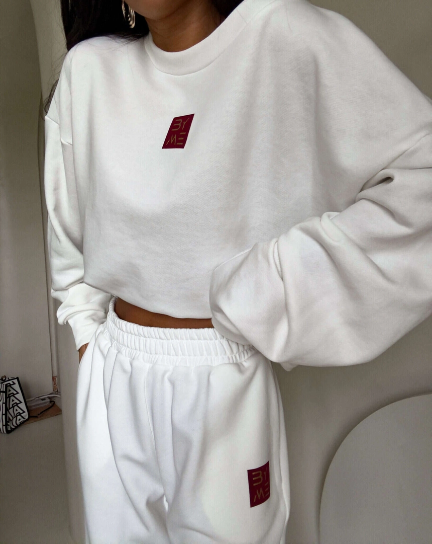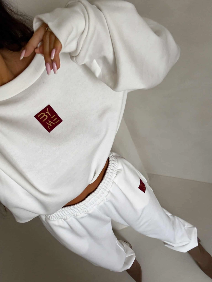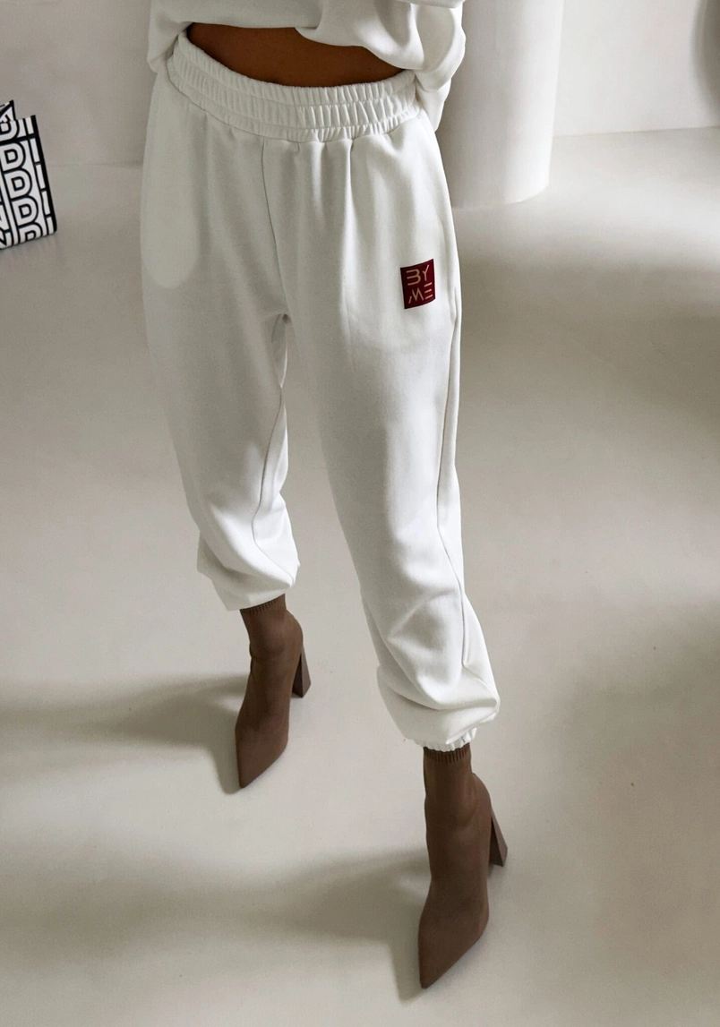 Spodnie dresowe – dopasowane, z elastycznym pasem w talii i ściągaczami na dole nogawek. Ich krój podkreśla sylwetkę, zachowując jednocześnie pełną swobodę ruchów.