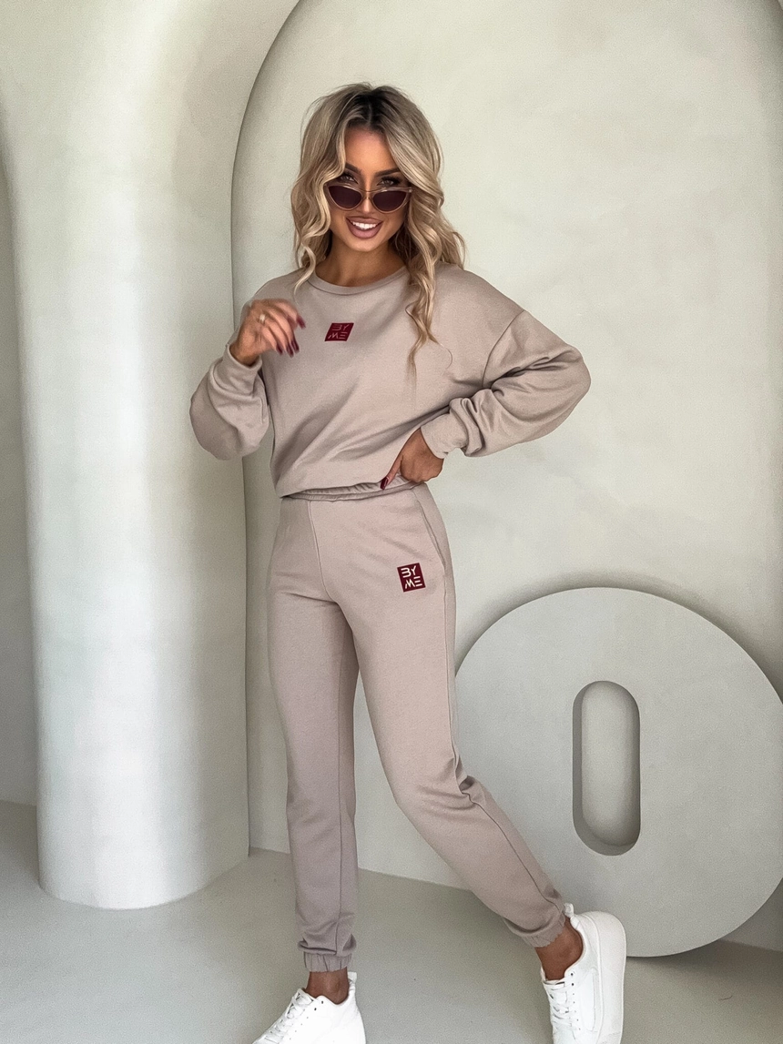 Spodnie dresowe – dopasowane, z elastycznym pasem w talii i ściągaczami na dole nogawek. Ich krój podkreśla sylwetkę, zachowując jednocześnie pełną swobodę ruchów.