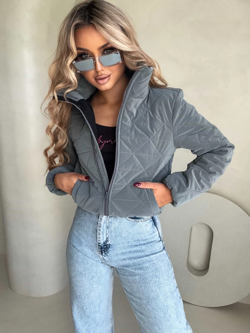 Zapinana na zamek błyskawiczny. Model wyposażony w stójkę, kieszenie oraz ściągacz u dołu, który umożliwia regulację długości i dopasowanie do sylwetki. Logowanie na plecach.