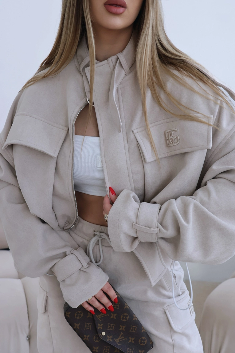 Opis produktu: Kurtka zamszowa BG MILITARY ze srebrnym suwakiem. Kurtka ozdobne pagony na ramionach oraz rękawach, kieszenie na przodzie oraz logo marki BG na patce kieszeni. Kurtka na podszewce