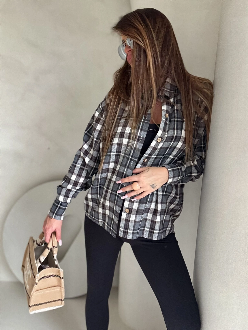 Koszula KRATA charakteryzuje się luźnym krojem oraz zapięciem regulowanym na guziczki.
