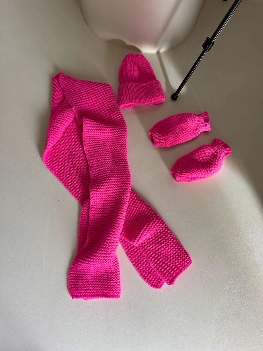 Komplet Alaska składający się z ciepłej czapki, szalika i rękawiczek bez palców.