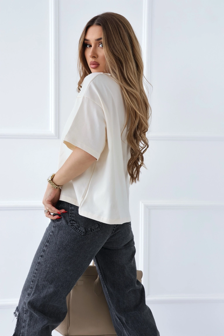 Opis produktu: T-shirt BG BING z wysokiej jakości bawełny z domieszką elastanu. Ozdobna bawełniana naszywka z logo marki BG Brandenburg Couture na przodzie. T-shirt o szerszym kroju.