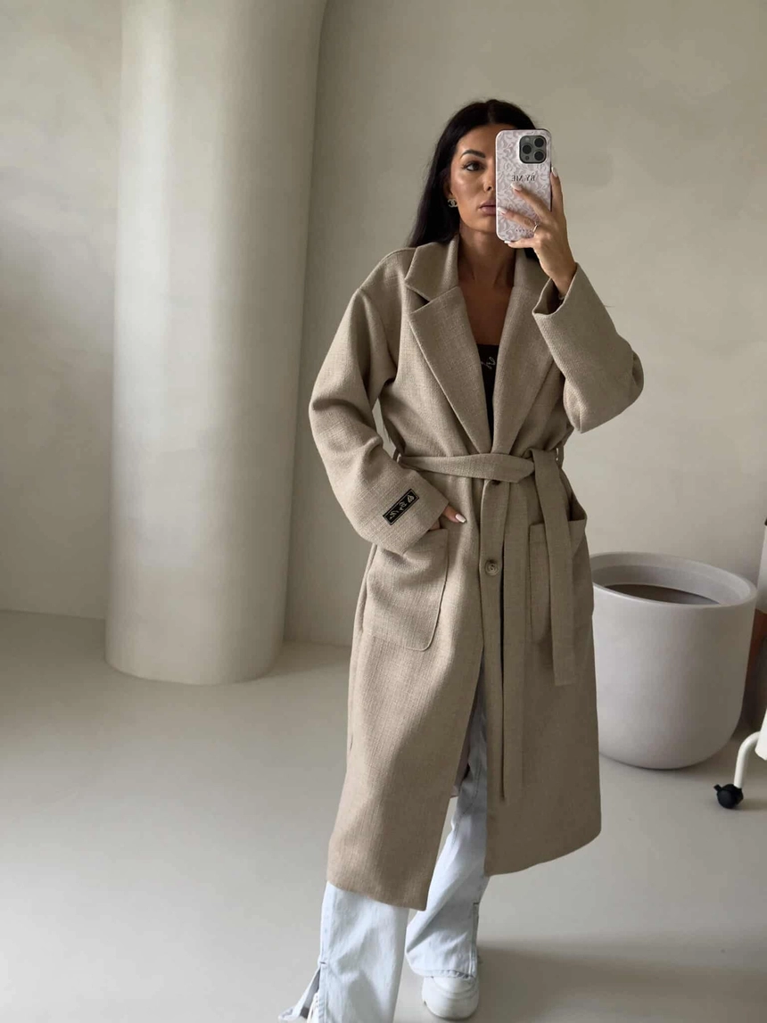 Elegancki płaszcz damski o długości za kolano. Luźny, oversize'owy fason zapewnia swobodę ruchów.