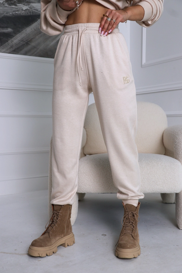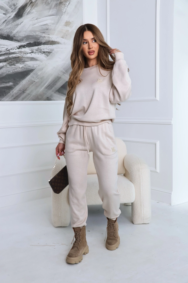 Opis produktu: Komplet sweterkowy BG VINCI. Bluza oraz spodnie logowane haftem BG w kolorze materiału. Sznurek ze sweterka w pasie.