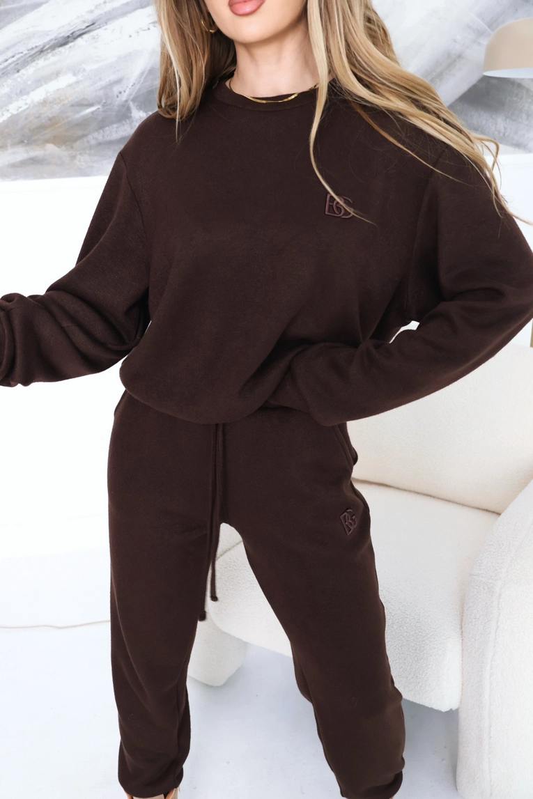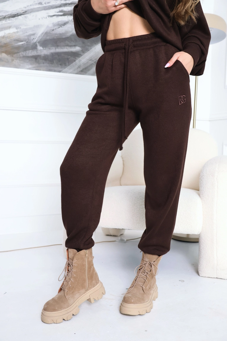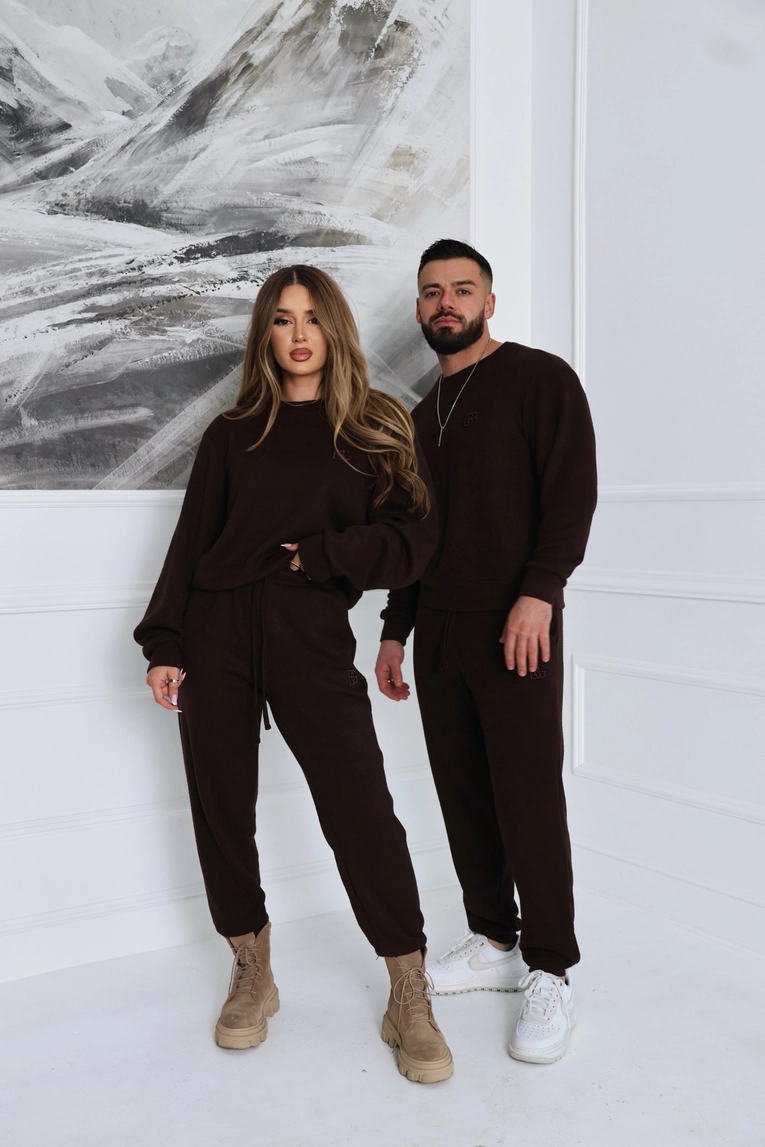 Opis produktu: Komplet sweterkowy BG VINCI. Bluza oraz spodnie logowane haftem BG w kolorze materiału. Sznurek ze sweterka w pasie.