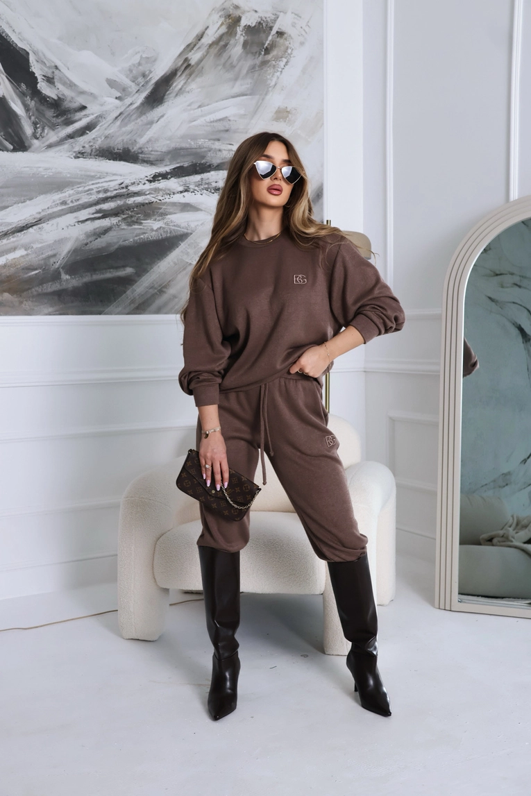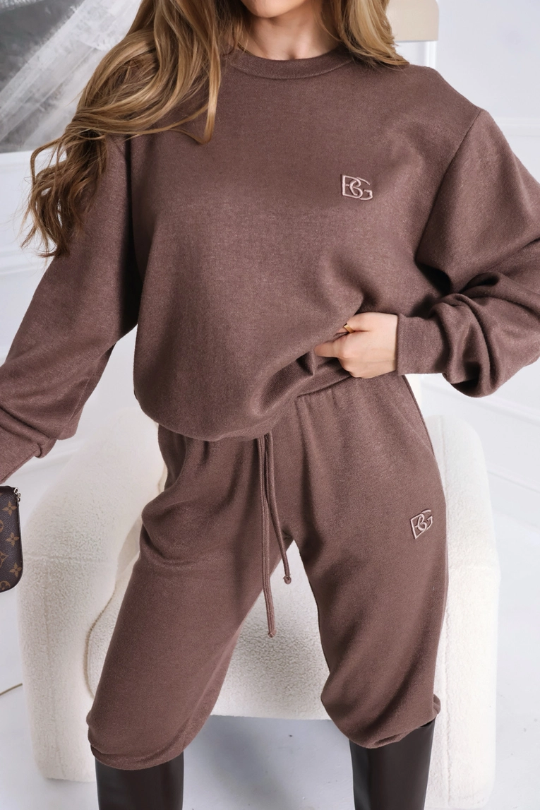 Opis produktu: Komplet sweterkowy BG VINCI. Bluza oraz spodnie logowane haftem BG w kolorze materiału. Sznurek ze sweterka w pasie.