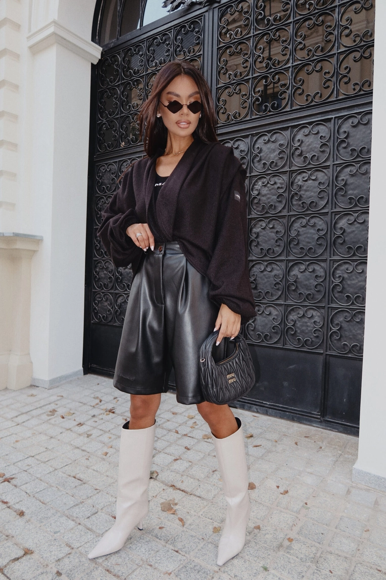 KOLOR LIMITOWANY!Miękki kardigan o swobodnym, nieco oversize’owym kroju, który możesz nosić luźno lub lekko wpuszczony w spodnie, jeśli chcesz nadać sylwetce formy. Szerokie rękawy i strukturalna linia ramion nadają mu charakteru, a przyjemny w dotyku materiał otula jak ciepły szal. Idealny na chłodniejsze dni – wygląda stylowo bez wysiłku, niezależnie od tego, z czym go zestawisz. Pasuje od rozmiaru XXS do XL.Skład: 55% akryl 2% poliester 9% nylon 5% wełna 3% spandex