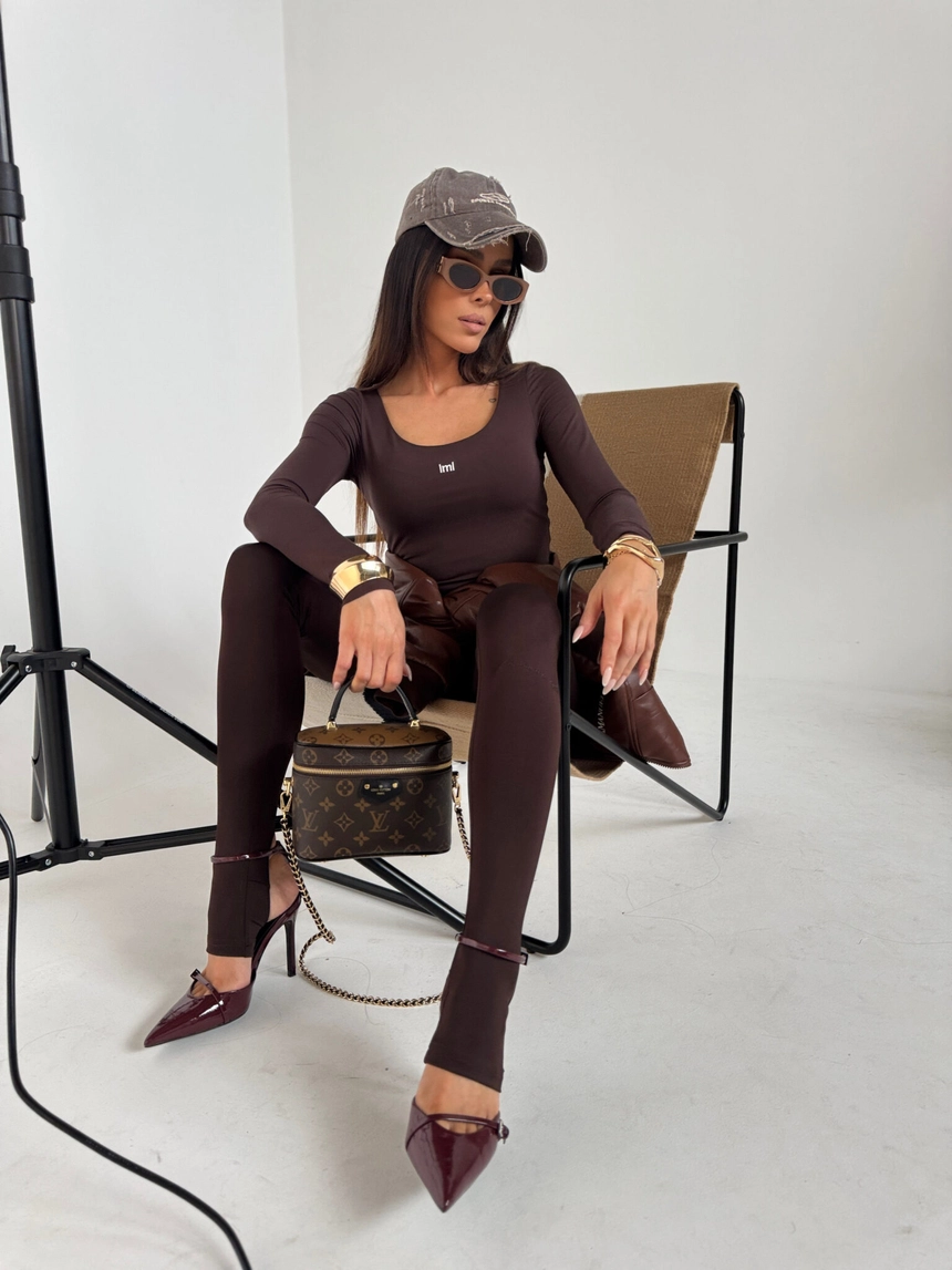 Dopasowane legginsy z elastycznej, gładkiej dzianiny o modelującym kroju. Wysoki stan podkreślający talię i delikatny haft z logo na łydce. Minimalistyczne, wygodne i stylowe – idealne do codziennych stylizacji, jak i na wyjście.Skład: 95% poliester 5% elastan