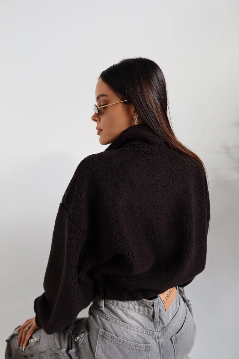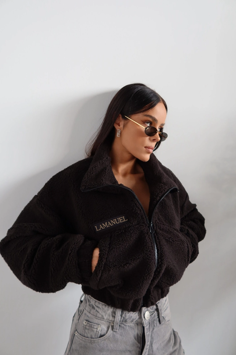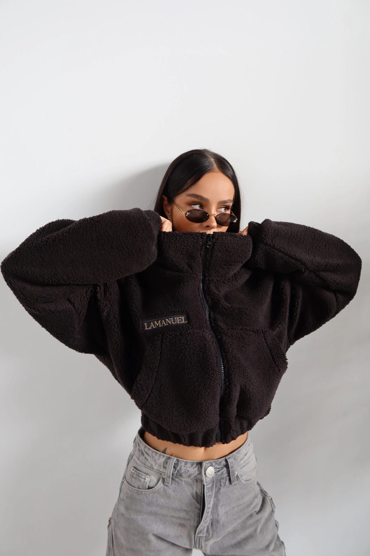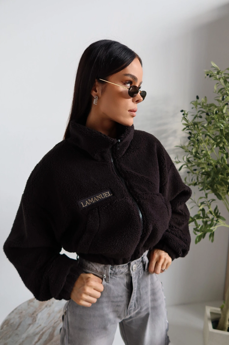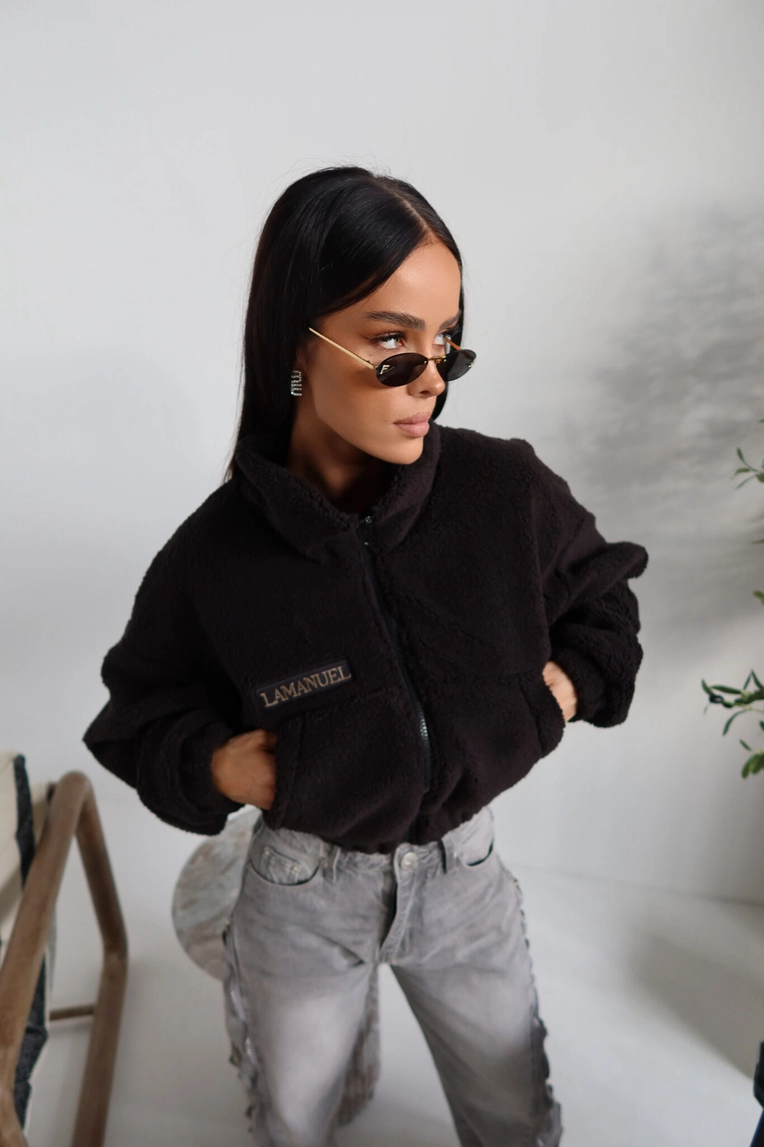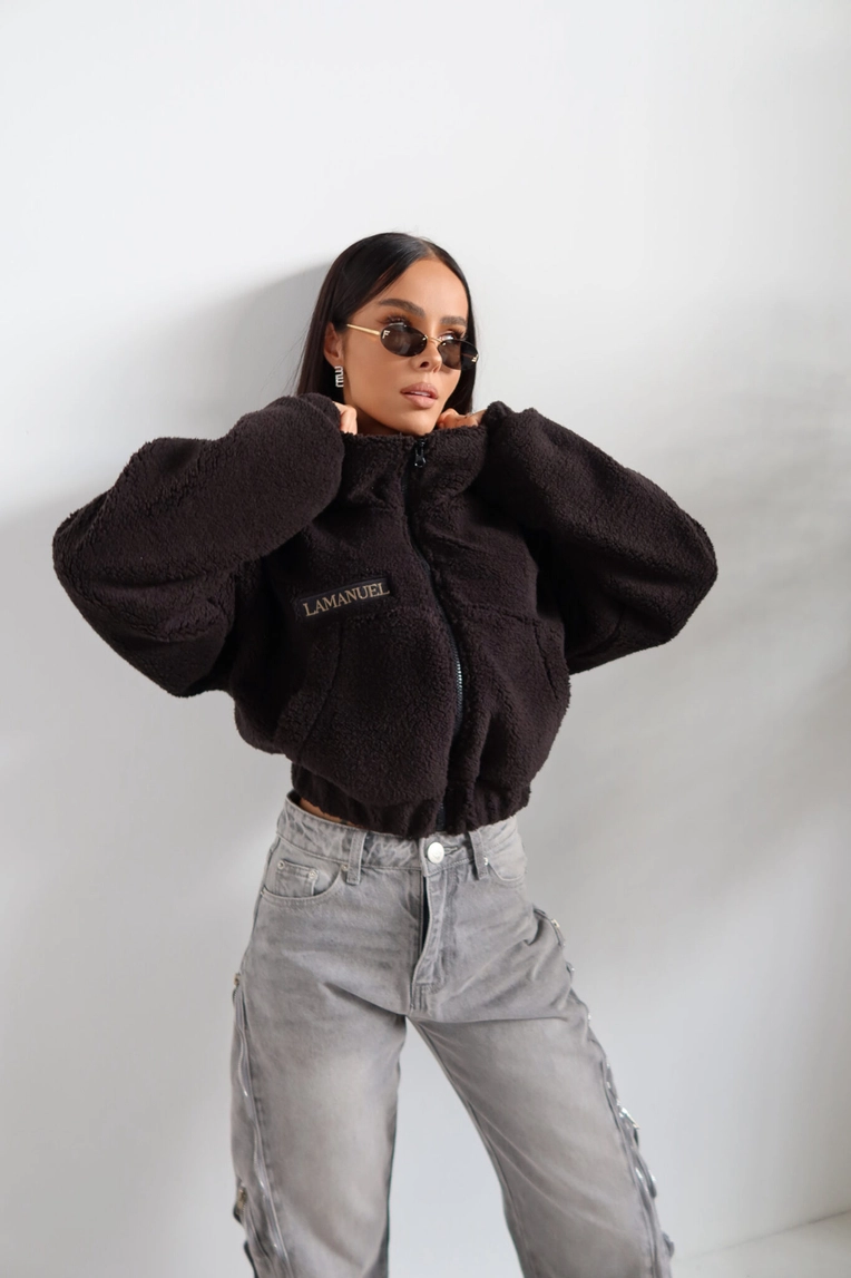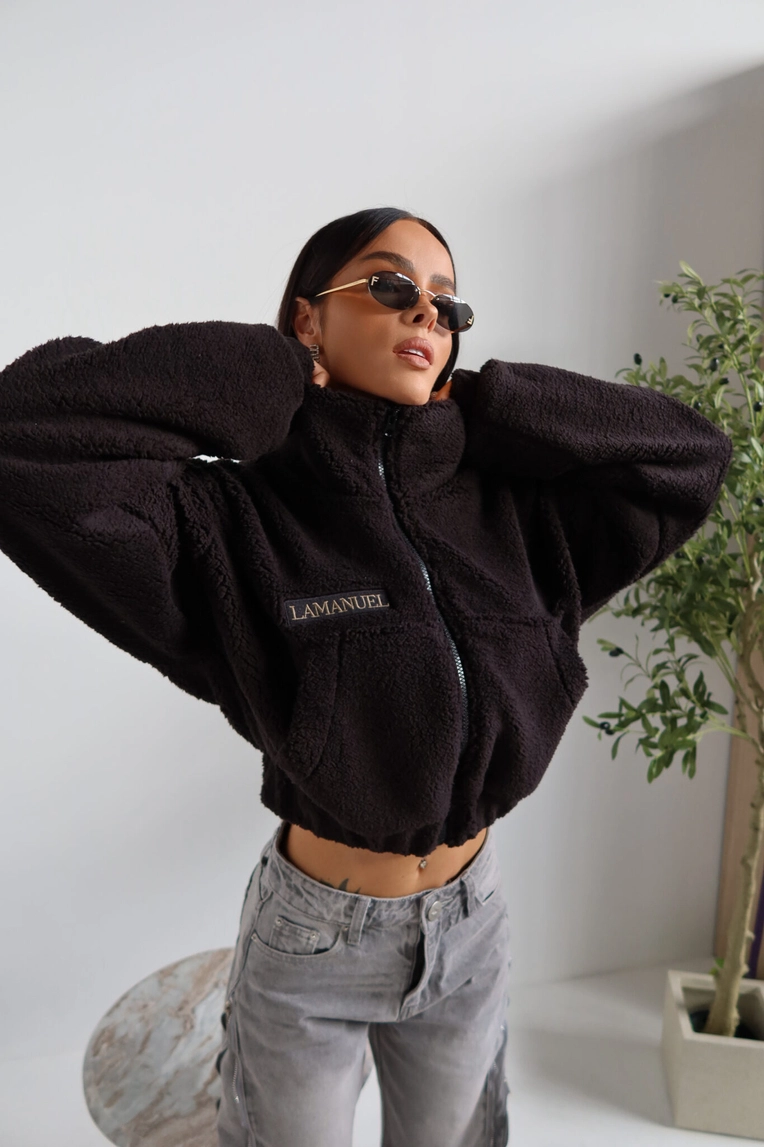 Kurtka z miękkiego, przytulnego futerka z podszewką od wewnątrz. Krótki, lekko oversize’owy fason z wysoką stójką, kieszeniami z klapką i zamkiem na całej długości. Na piersi naszywka z logo. Ciepła i stylowa propozycja na chłodniejsze dni.Skład: 100% poliester