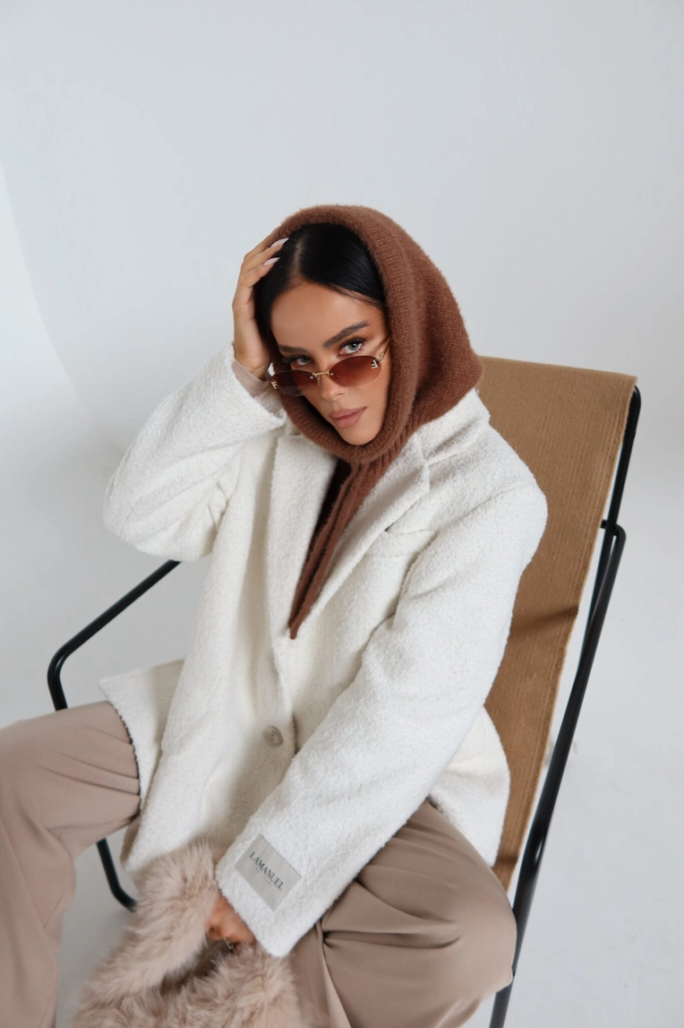 Miękka, dzianinowa balaclava o klasycznym kroju z wiązaniem pod brodą. Elastyczna, przyjemna w dotyku, dobrze dopasowuje się do głowy. Ciepła i stylowa alternatywa dla czapki – idealna do płaszczy, kurtek i marynarek. Wykończona naszywką z logo z tyłu.Skład: 55% poliamid 35% wiskoza 6% poliester 4% modal