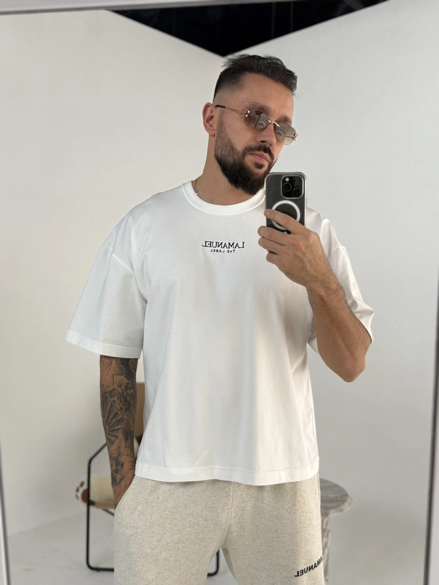 Klasyczny, męski t-shirt o szerokim, swobodnym kroju. Logo LAMANUEL w formie haftu z przodu dodaje charakteru. Idealny basic na co dzień – sprawdza się zarówno w streetwearze, jak i w casualowych stylizacjach.Skład: 100% bawełna