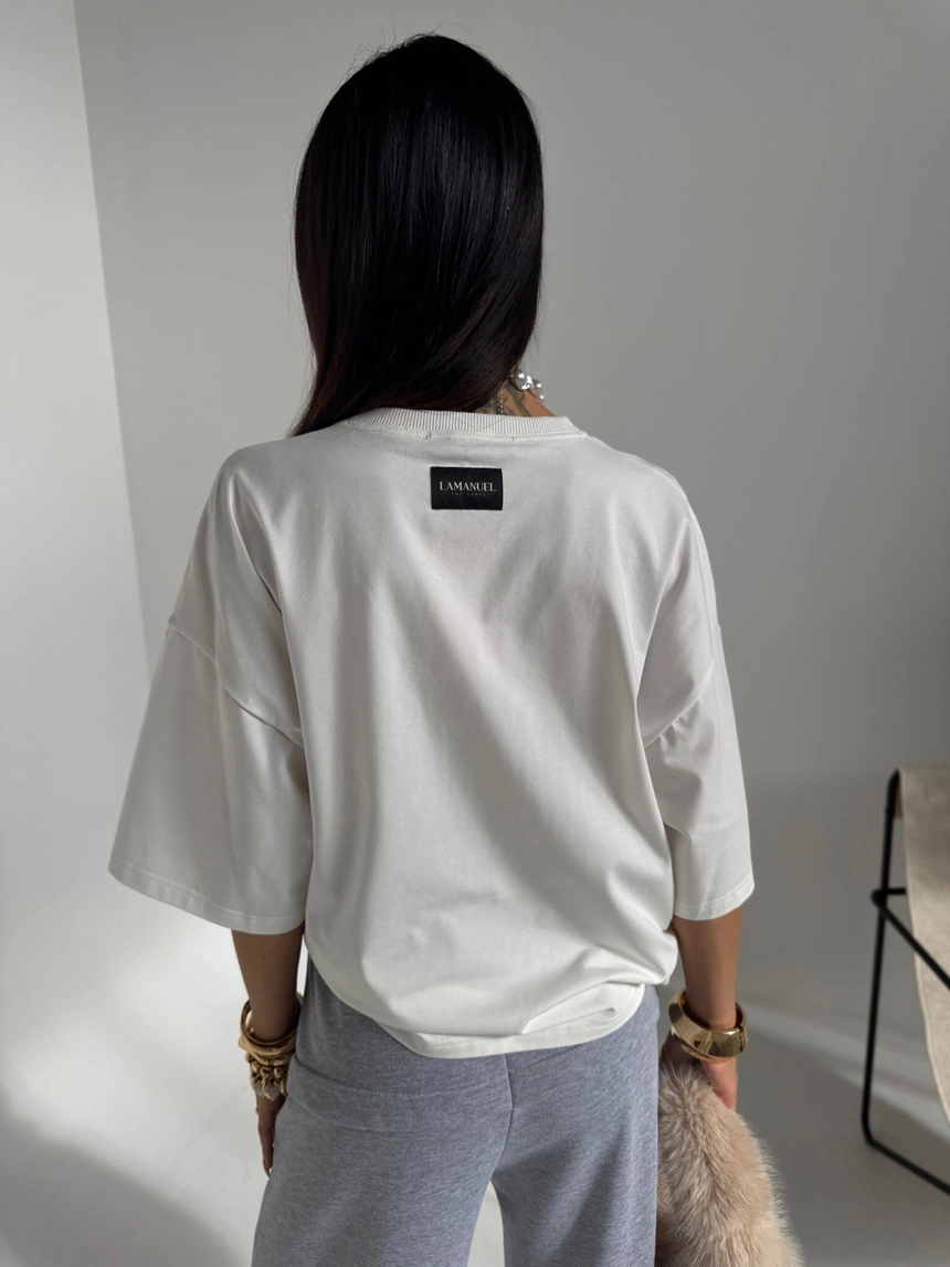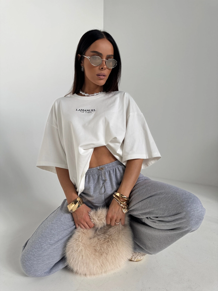 Luźny t-shirt o kroju oversize z delikatnie obniżoną linią ramion. Minimalistyczny haft z logo LAMANUEL z przodu. Wygodny, miękki materiał, który dobrze układa się na sylwetce. Świetny do codziennych stylówek, zarówno solo, jak i w zestawie matchy.Skład: 100% bawełna