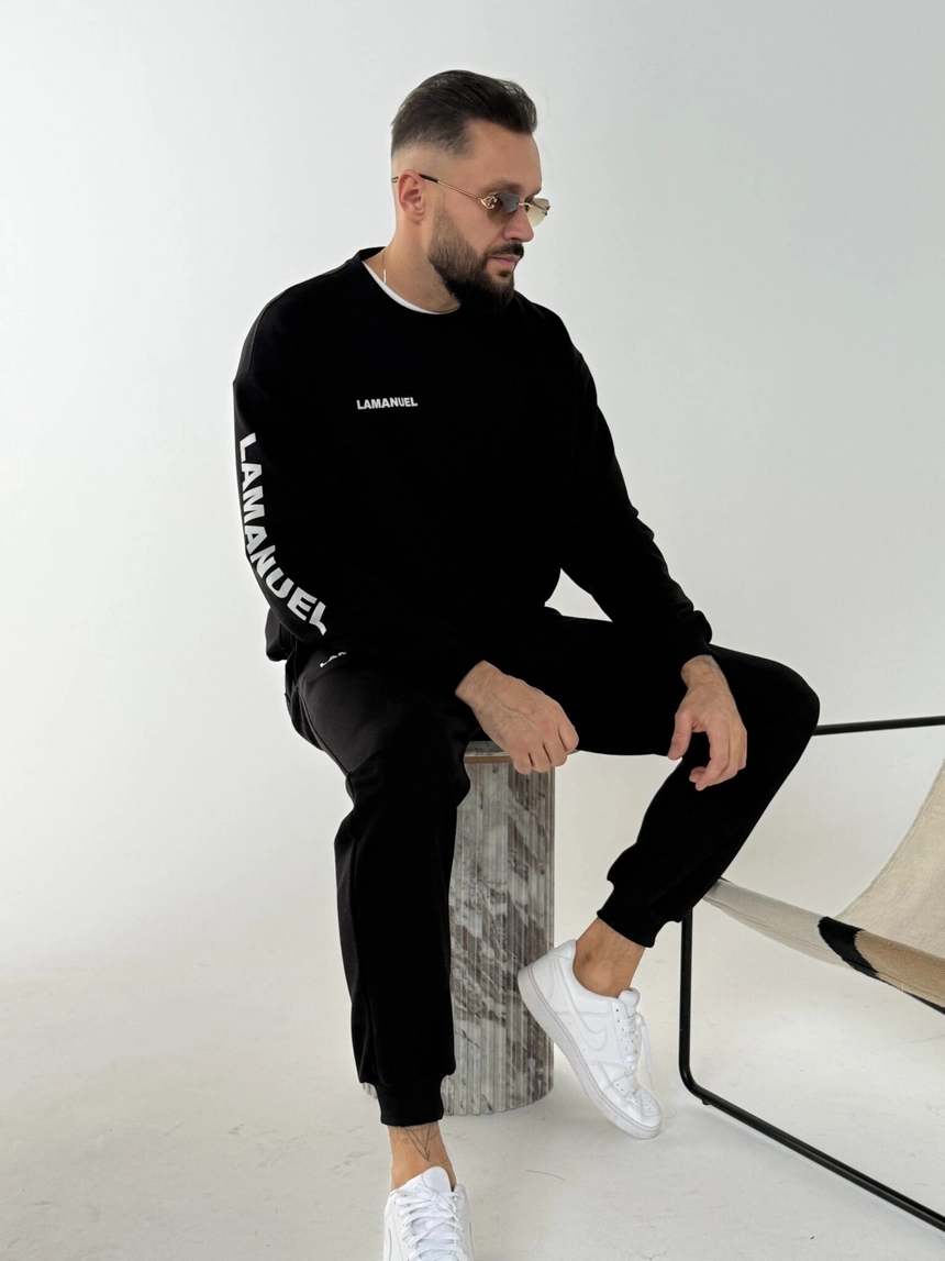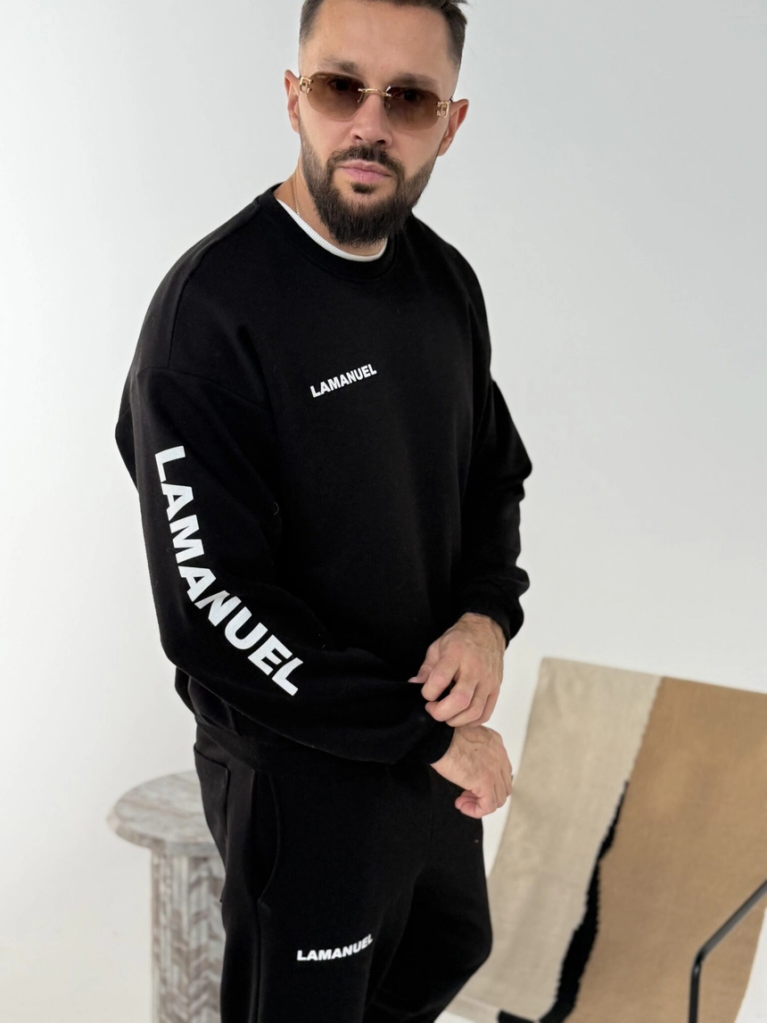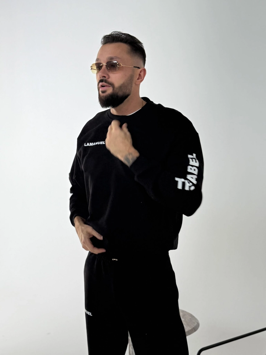 Męski zestaw dresowy w wersji premium – maksymalna wygoda i wyrazisty styl. Na rękawie kontrastowy napis "LAMANUEL", na drugim "THE LABEL". Oversize'owy krój i miękka tkanina zapewniają komfort w każdej sytuacji. Idealny do zestawu matchy z partnerką.Skład: 90% bawełna 10% poliester