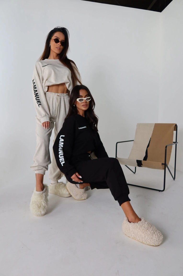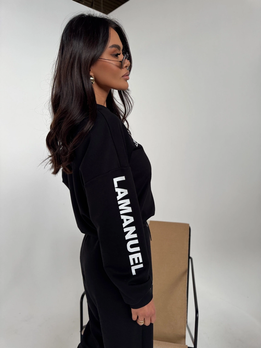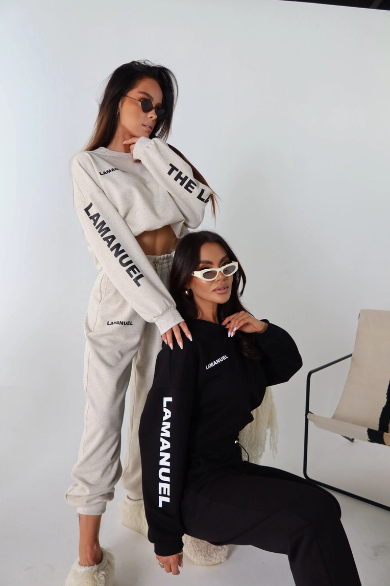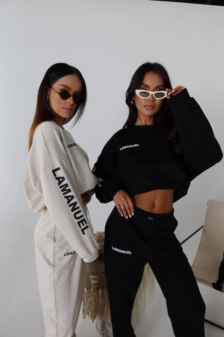 Bluza o luźnym, lekko oversize kroju z dzianiny pętelkowej o wysokiej gramaturze. Miękka i wygodna, ze ściągaczami przy rękawach i dole. Logo LAMANUEL na piersi oraz pionowe nadruki na rękawach „LAMANUEL / THE LABEL”. Świetnie wygląda solo i w komplecie.Skład: 90% bawełna 10% poliester
