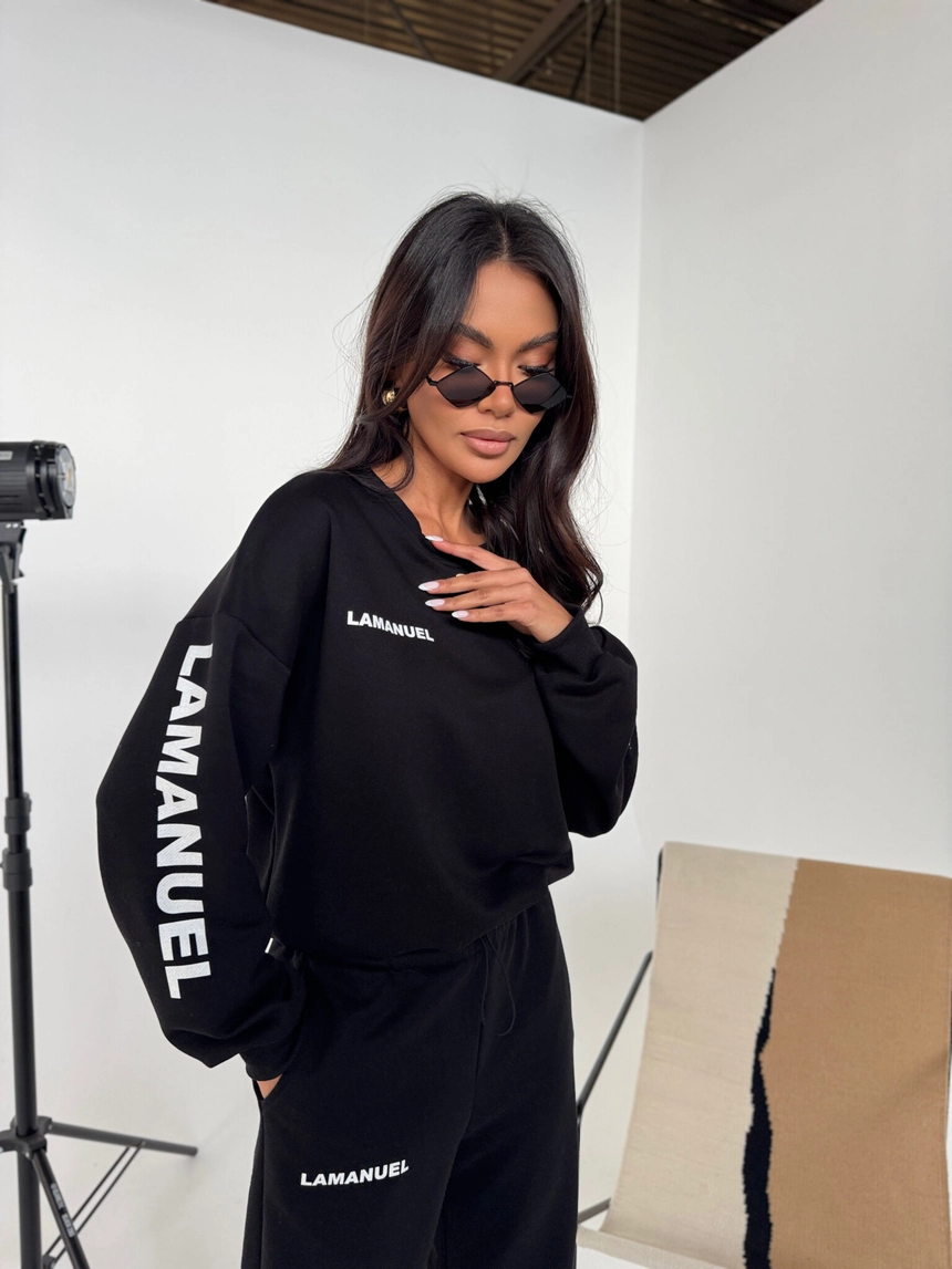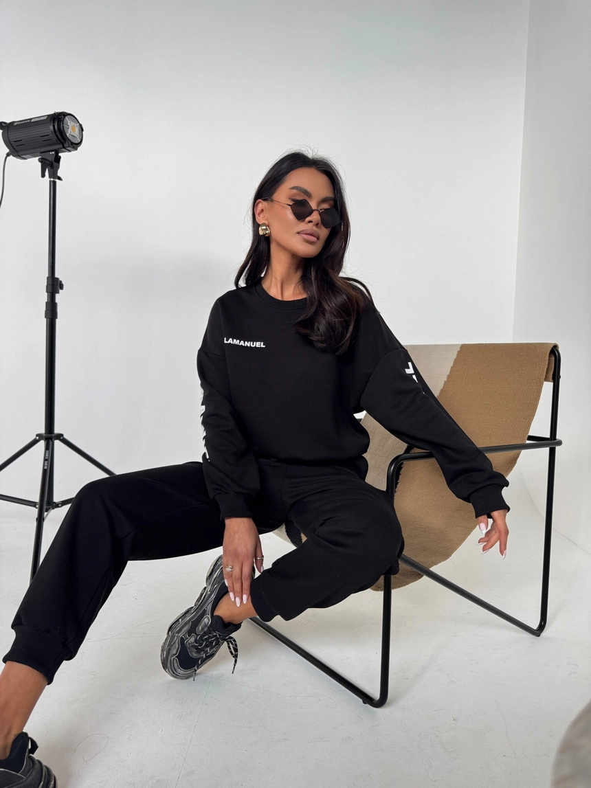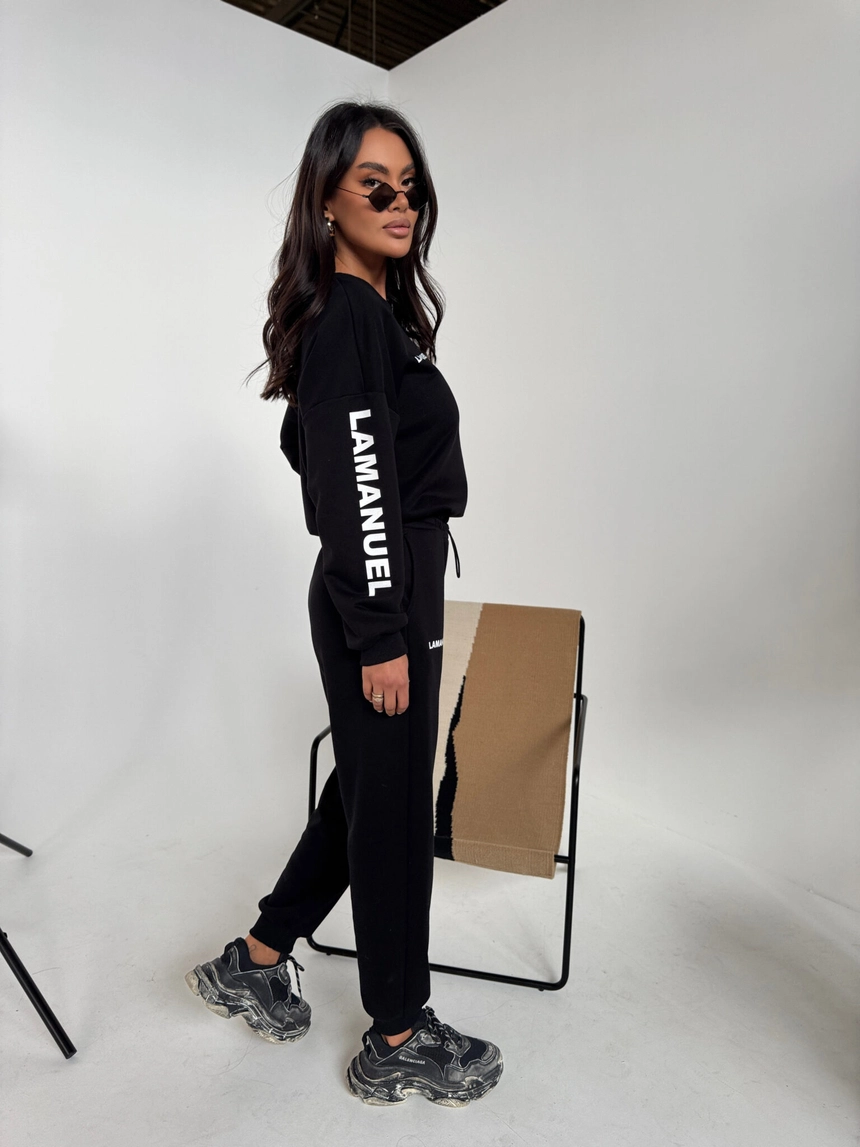 Bluza o luźnym, lekko oversize kroju z dzianiny pętelkowej o wysokiej gramaturze. Miękka i wygodna, ze ściągaczami przy rękawach i dole. Logo LAMANUEL na piersi oraz pionowe nadruki na rękawach „LAMANUEL / THE LABEL”. Świetnie wygląda solo i w komplecie.Skład: 90% bawełna 10% poliester