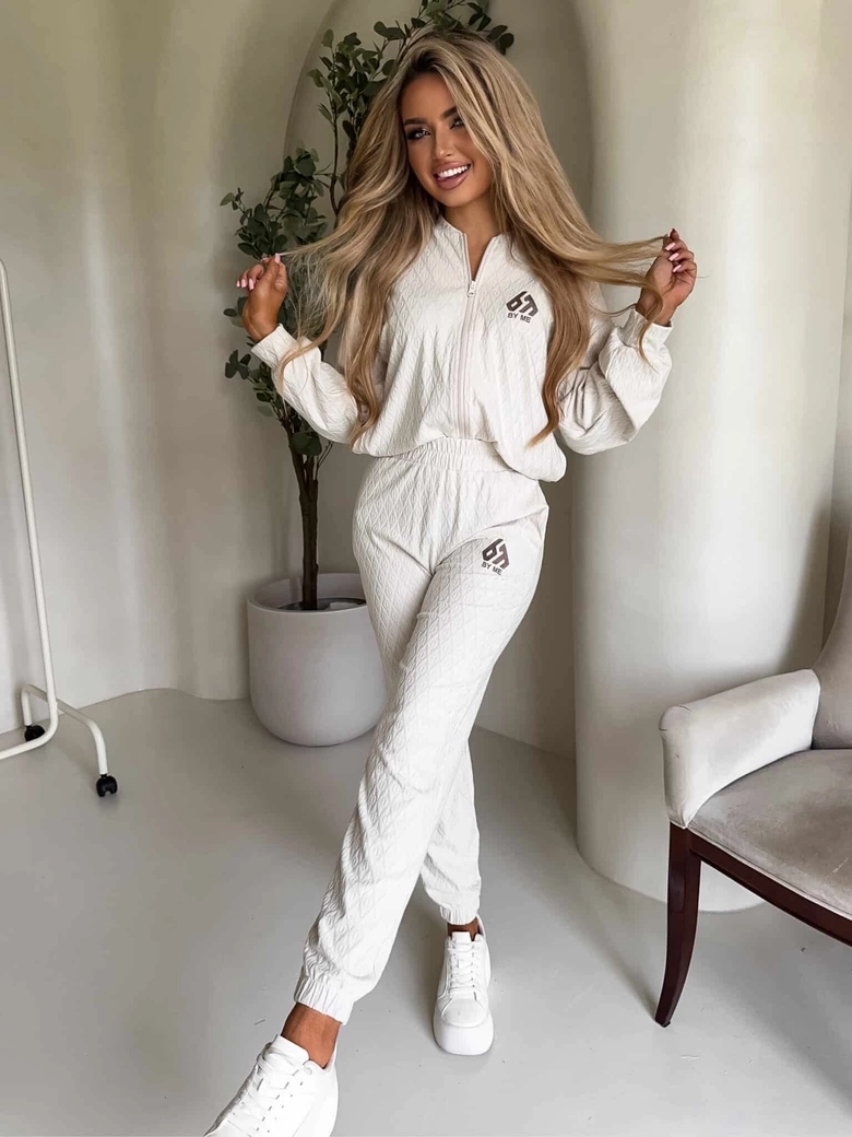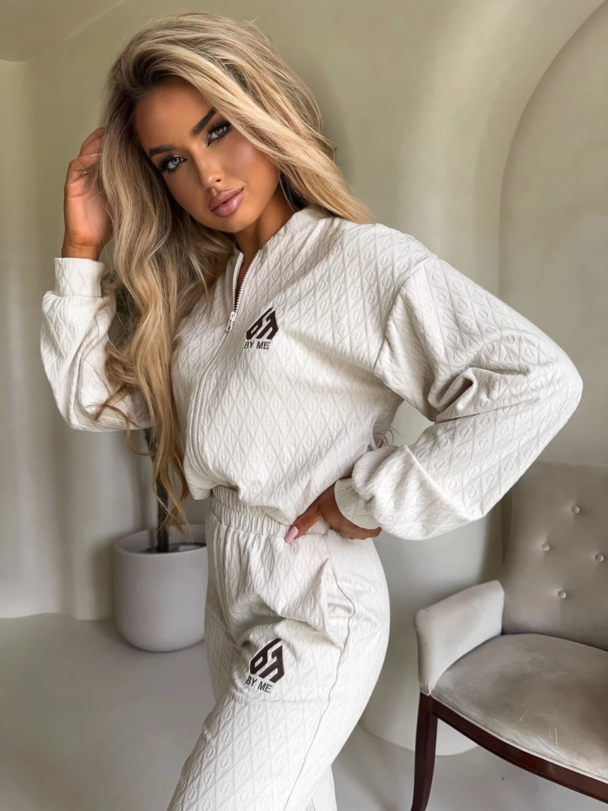 Komplet Artemis składa się z rozpinanej bluzy oraz spodni z elastyczną gumką w pasie i nogawkach, co zapewnia idealne dopasowanie i swobodę ruchów. Bluza wyposażona jest w praktyczny zamek błyskawiczny, a spodnie mają dwie funkcjonalne kieszenie, które pomieszczą niezbędne drobiazgi. Całość wyróżniają subtelne haftowane logowania.