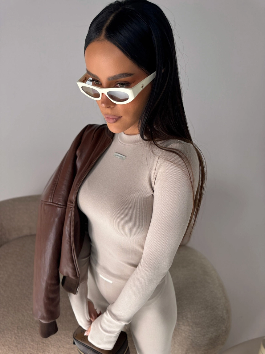 NOWY KOLOR NASZEGO BESTSELLERA!Ten top to must-have, jeśli kochasz wygodę i styl w jednym. Wykonany z tego samego mięsistego prążka co legginsy i sukienka – genialnie się rozciąga, dopasowując się do sylwetki jak druga skóra, a potem wraca na swoje miejsce bez najmniejszego luzu. Długi rękaw z otworem na kciuk dodaje mu sportowego charakteru i praktycznego twistu. Nosi się go tak dobrze, że nie będziesz chciała go zdjąć. Produkt mocno uciągliwy nawet po długości!Skład: 95% bawełna 5% elastan