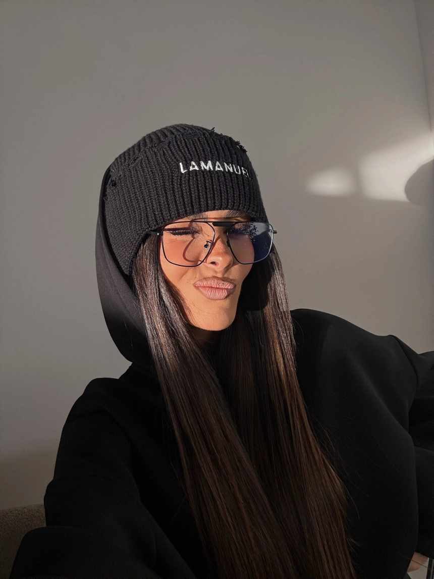 Gruba, prążkowana czapka z wyraźnym haftem z przodu i surowym wykończeniem dodaje charakteru każdej stylówce, trzyma formę, dobrze leży i pasuje do miejskiego klimatu niezależnie od tego, co masz na sobie.Skład: 40% akryl 25% wiskoza 20% wełna 15% elastan