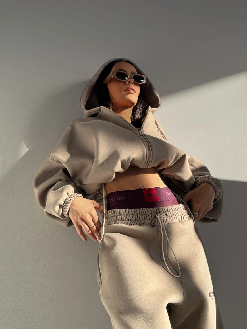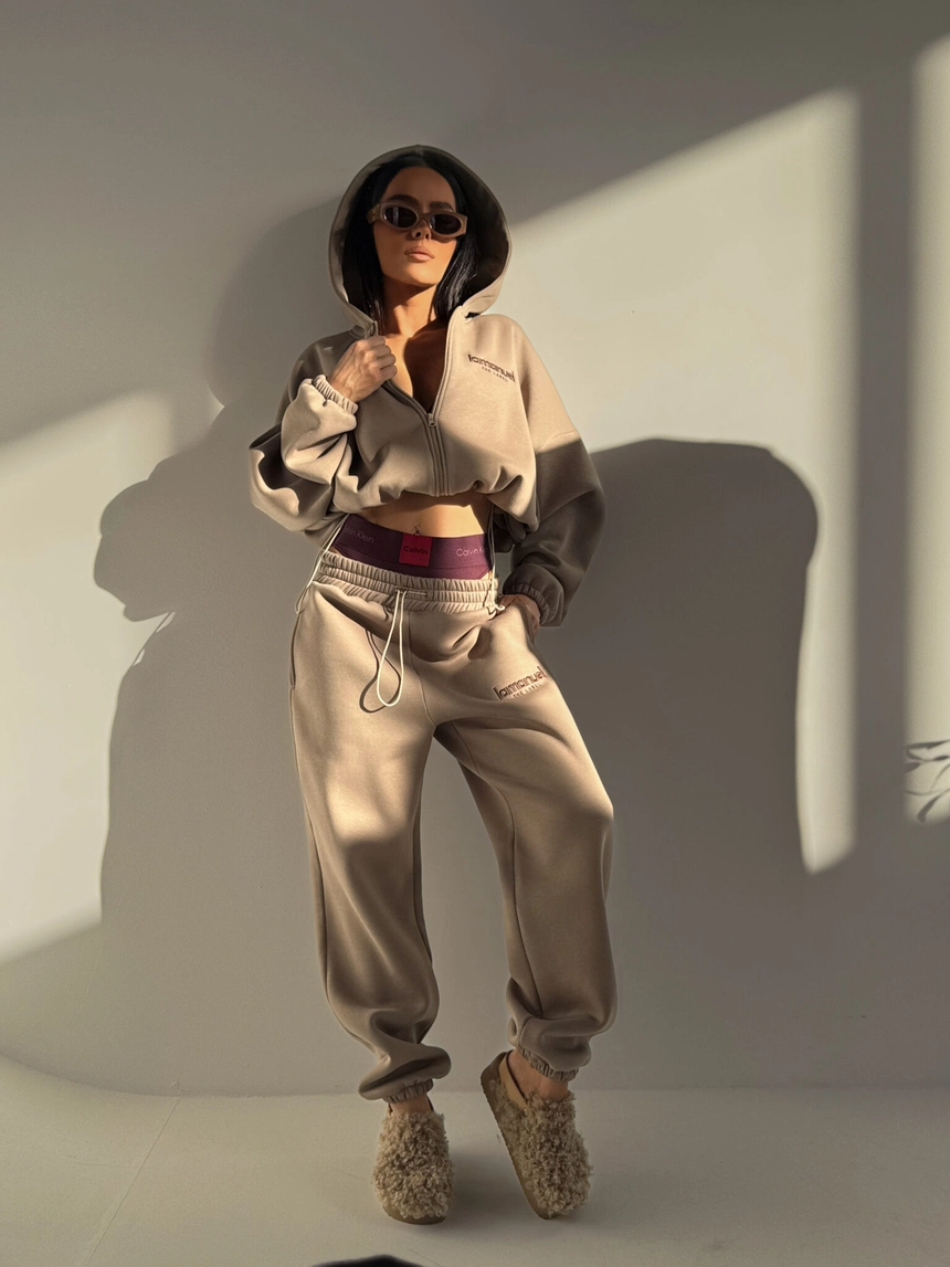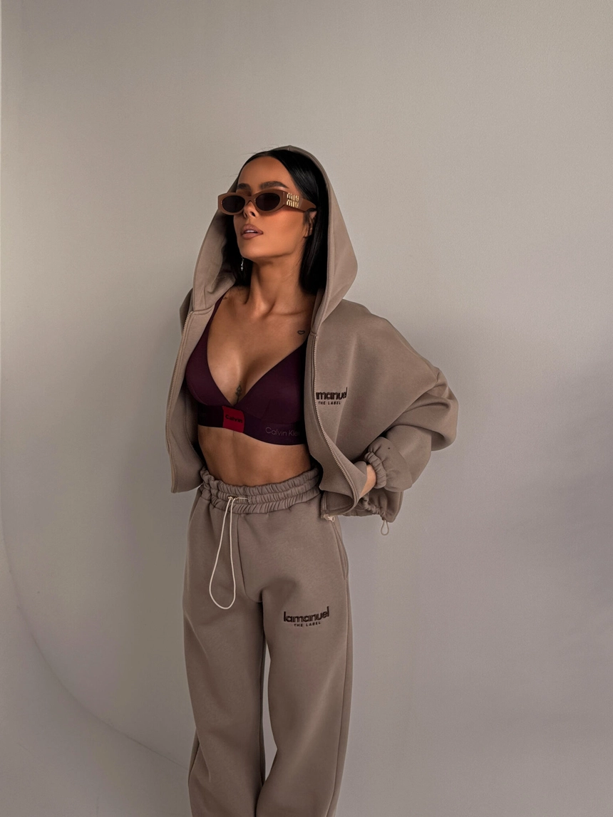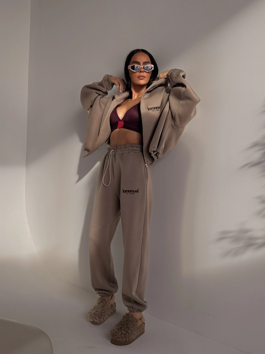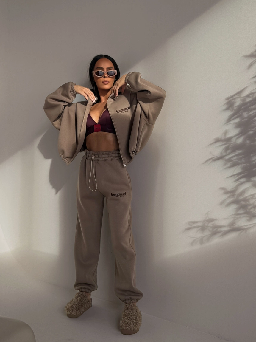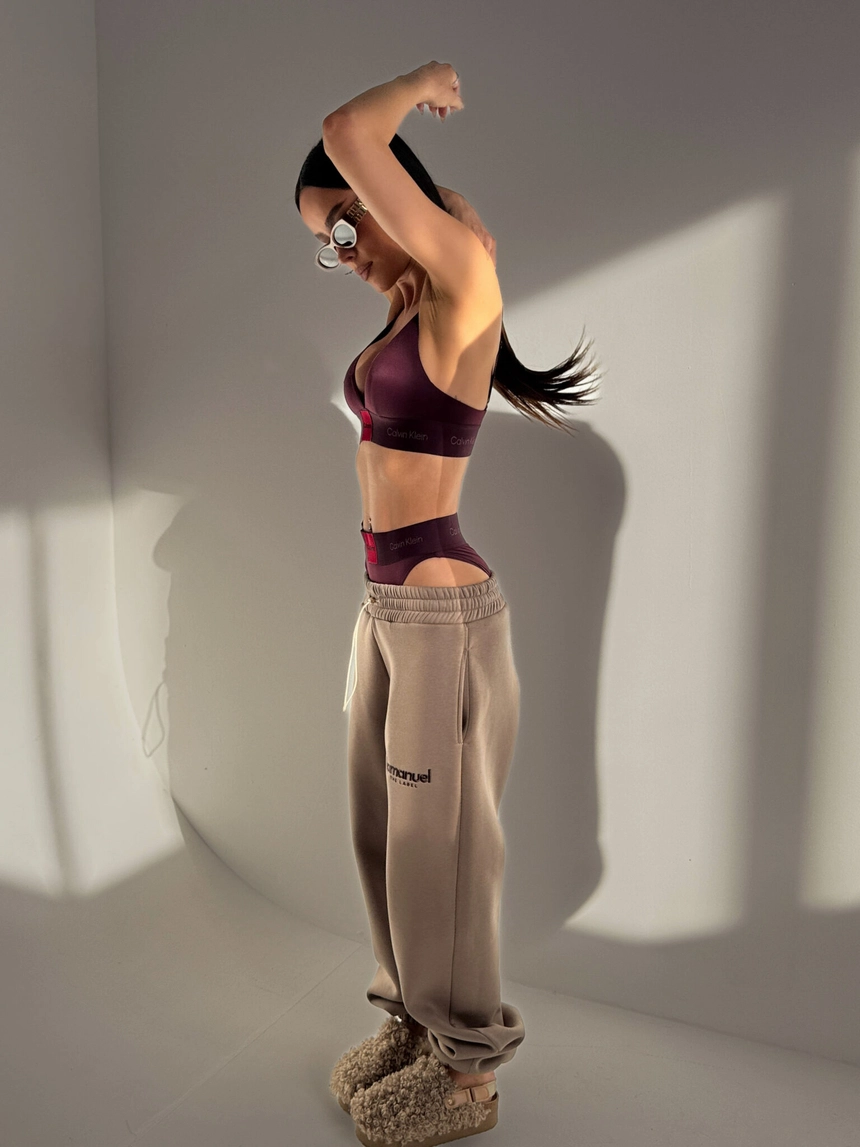 Oversize’owe spodnie z dzianiny drapanej to totalny chill level pro – grubszy materiał od środka to miękki „misiek”, który otula jak kocyk, ale nie wygląda jak piżama tylko jak dobrze przemyślany street look, mają wysoką talię z elastycznym pasem, luźną nogawkę i logo LAMANUEL, które robi robotę i daje ten detal, który od razu mówi: to nie są zwykłe dresy, to dresy z charakterem.Skład: 90% bawełna 10% poliester