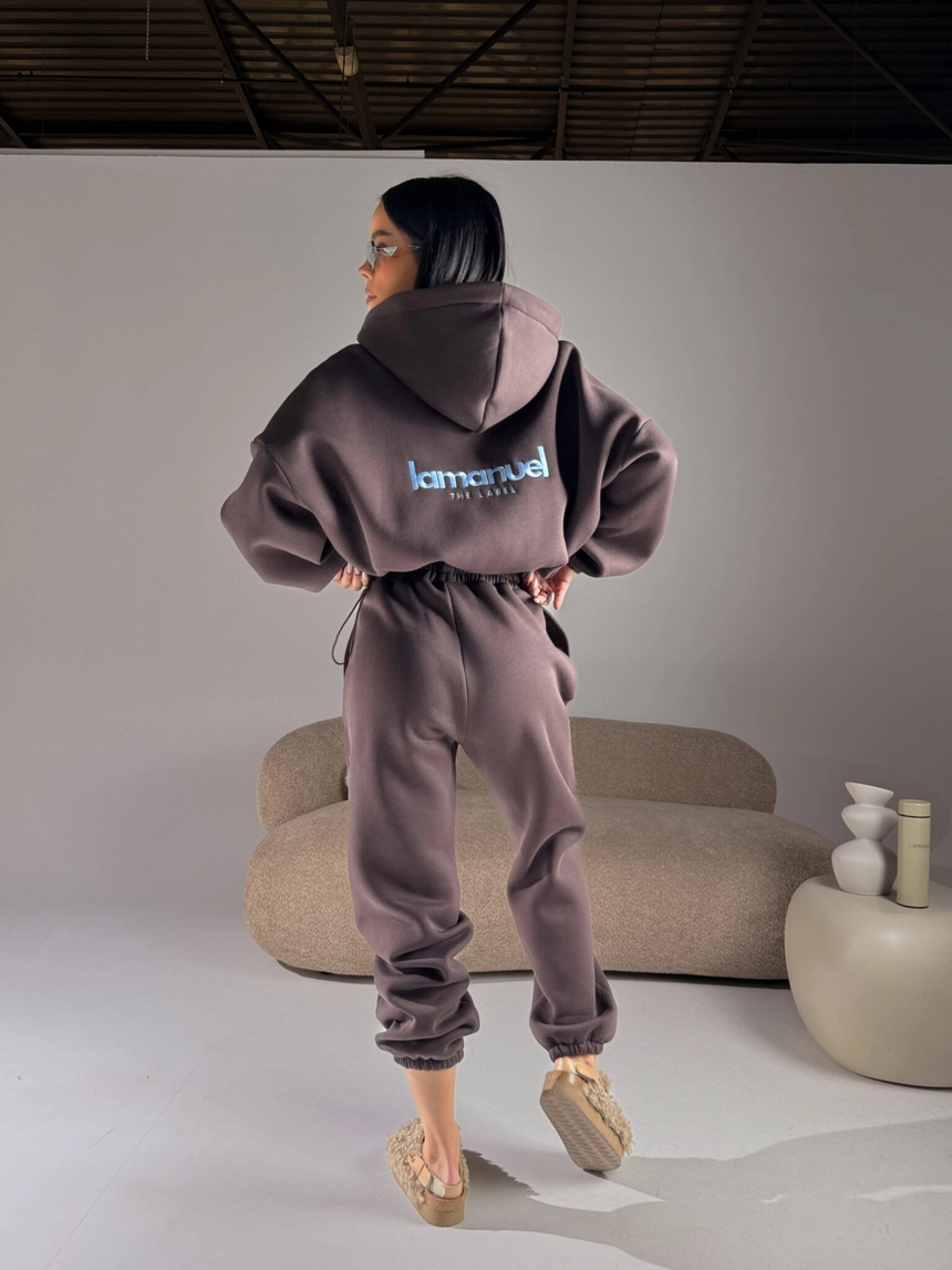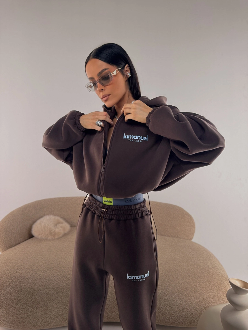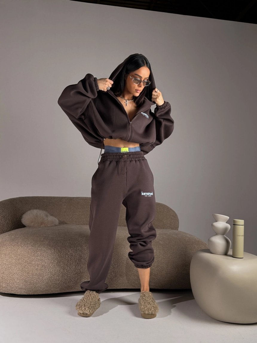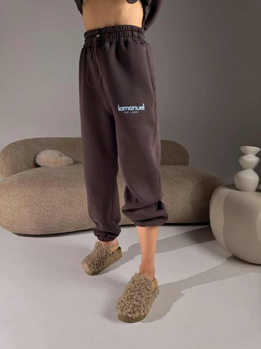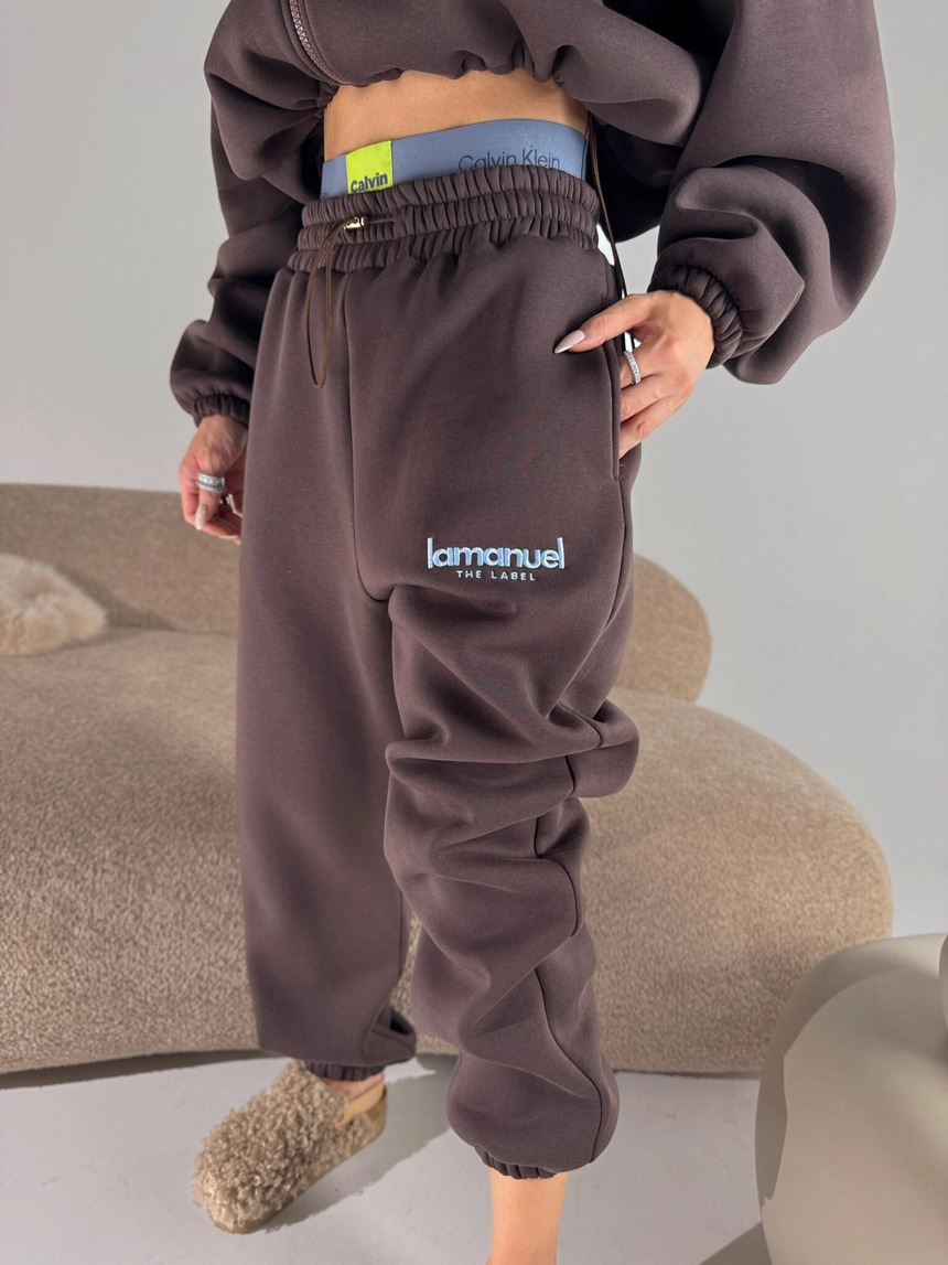 Oversize’owe spodnie z dzianiny drapanej to totalny chill level pro – grubszy materiał od środka to miękki „misiek”, który otula jak kocyk, ale nie wygląda jak piżama tylko jak dobrze przemyślany street look, mają wysoką talię z elastycznym pasem, luźną nogawkę i logo LAMANUEL, które robi robotę i daje ten detal, który od razu mówi: to nie są zwykłe dresy, to dresy z charakterem.Skład: 90% bawełna 10% poliester