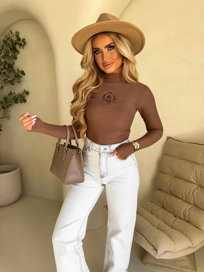 Bluzka SKIN o dopasowanym kroju sprawdzi się jako baza do wielu różnorodnych stylizacji. Przód i tył z delikatną podszewką, dzięki której nic nie prześwituje. Charakteryzuje się rękawem typu long sleeve oraz haftem na przodzie. Jej krój zagwarantuje komfort i wygodę noszenia. Delikatna stójka.