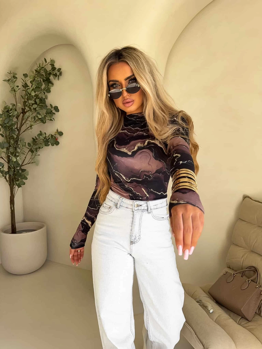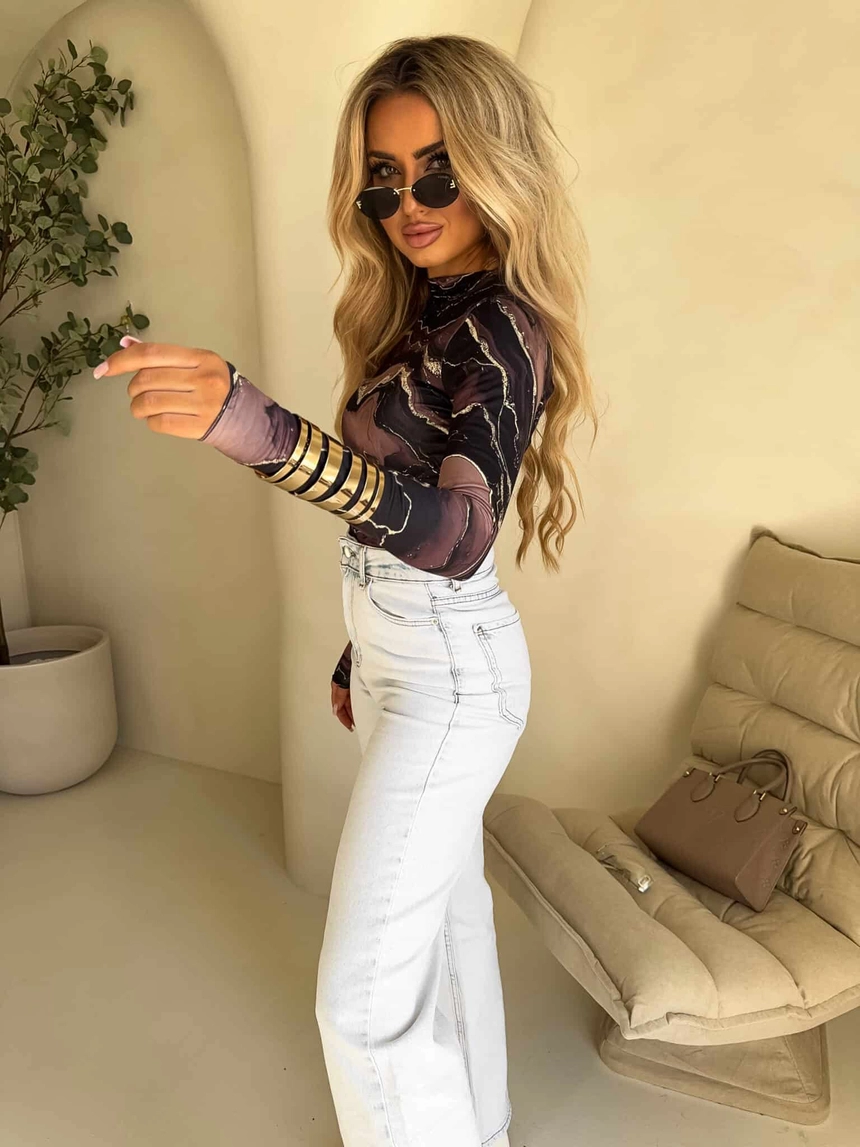 Bluzka SKIN o dopasowanym kroju sprawdzi się jako baza do wielu różnorodnych stylizacji. Przód i tył z delikatną podszewką, dzięki której nic nie prześwituje. Charakteryzuje się rękawem typu long sleeve. Jej krój zagwarantuje komfort i wygodę noszenia. Delikatna stójka.