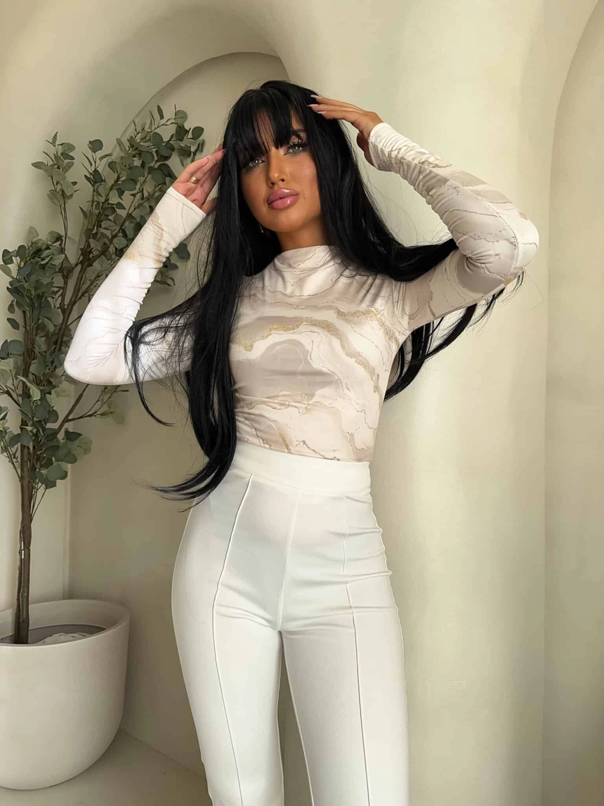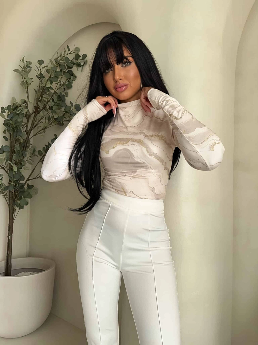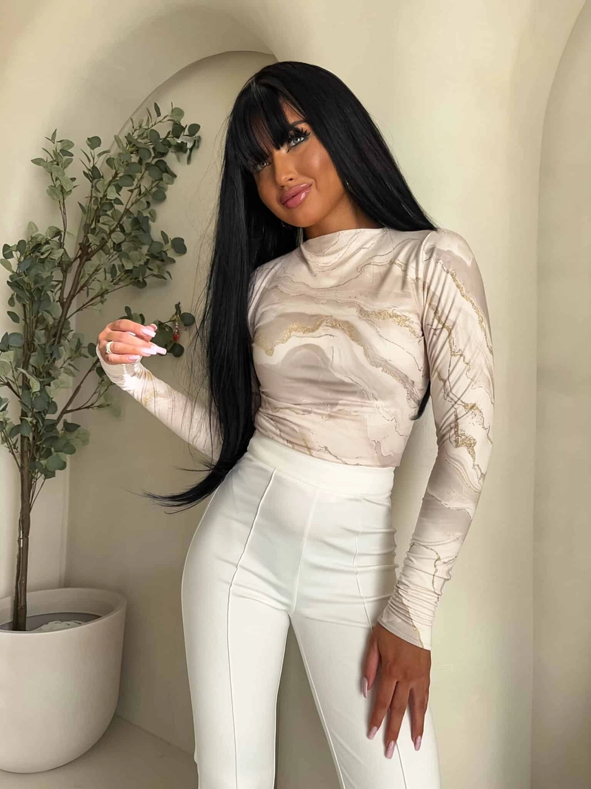 Bluzka SKIN o dopasowanym kroju sprawdzi się jako baza do wielu różnorodnych stylizacji. Przód i tył z delikatną podszewką, dzięki której nic nie prześwituje. Charakteryzuje się rękawem typu long sleeve. Jej krój zagwarantuje komfort i wygodę noszenia. Delikatna stójka.