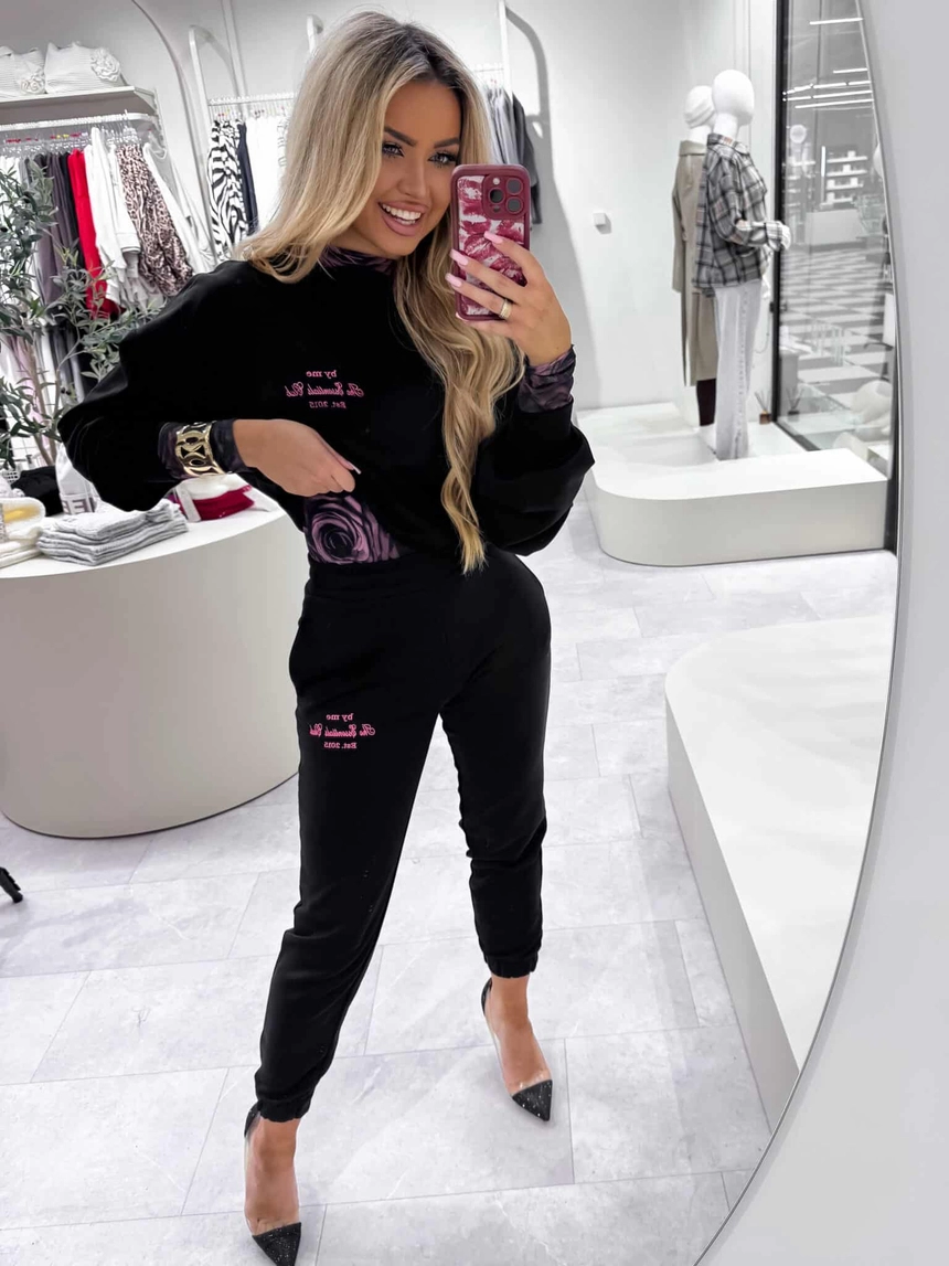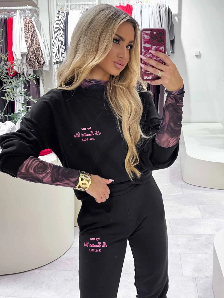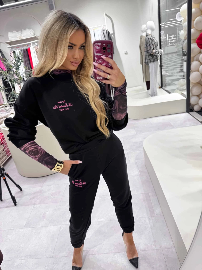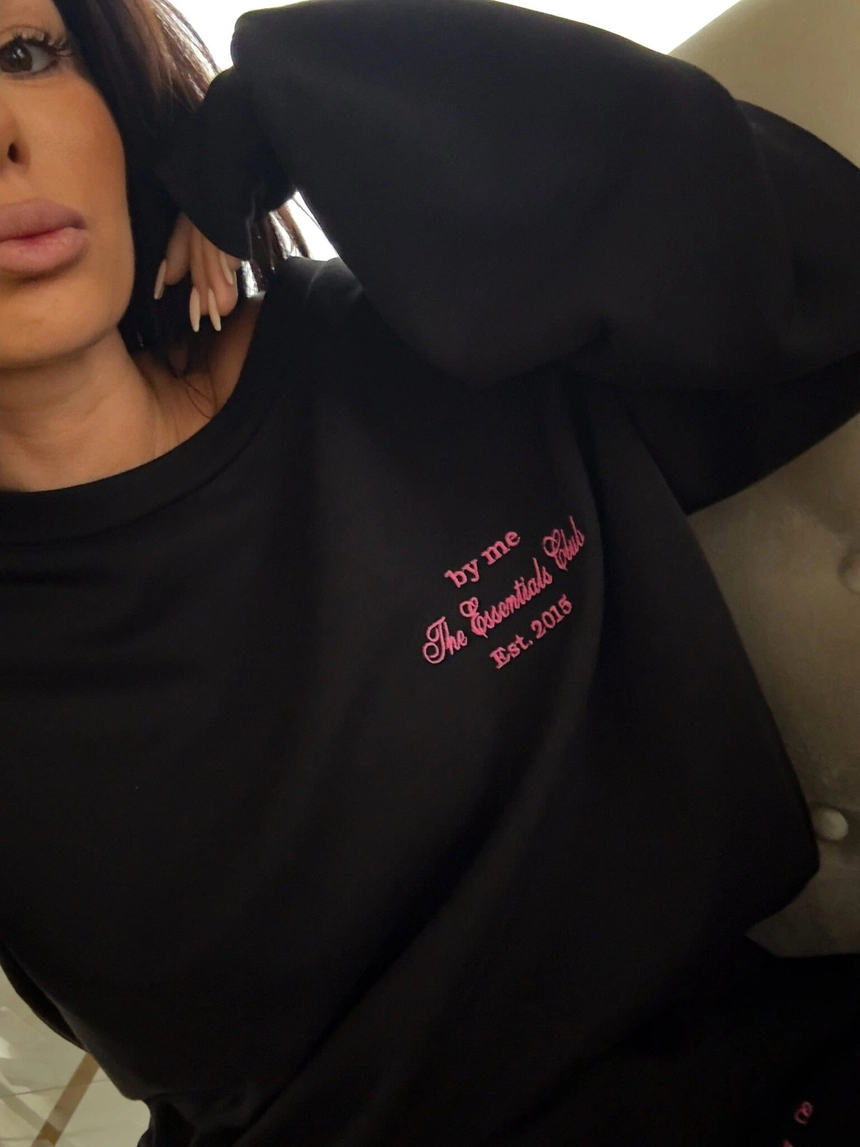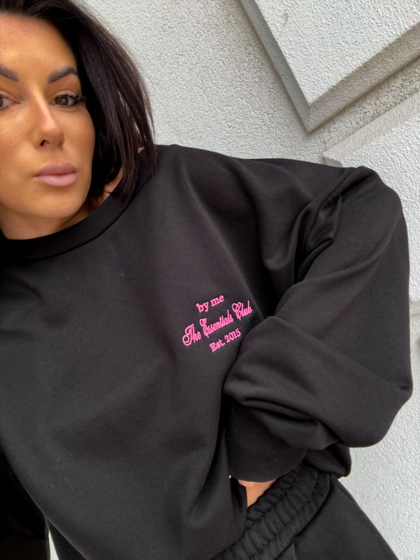Komplet Essential składający się z bluzy o luźnym kroju, z długim rękawem oraz haftem na boku. Spodnie posiadają haft, gumki na nogawkach i w pasie oraz dwie wbudowane kieszenie.