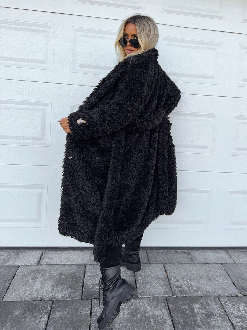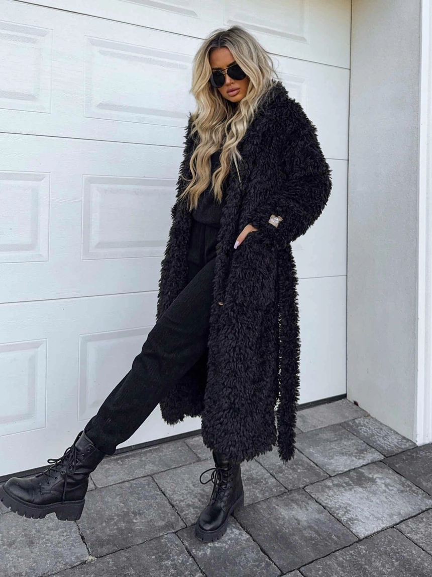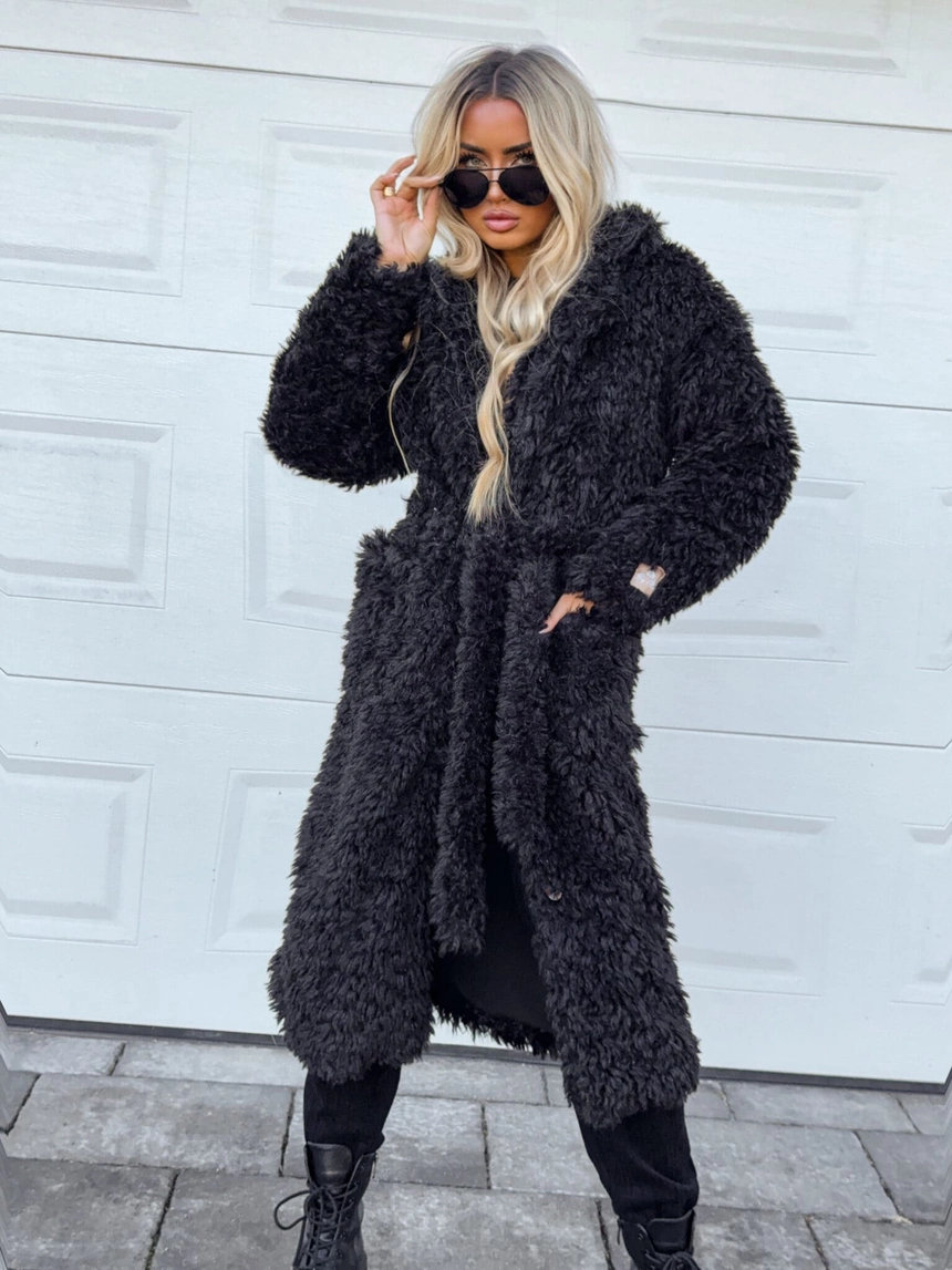 Ciepły płaszcz z podszewką, posiada kieszenie i pasek. Zapinany na guziki. Na lewym rękawie naszywka z logo By Me.