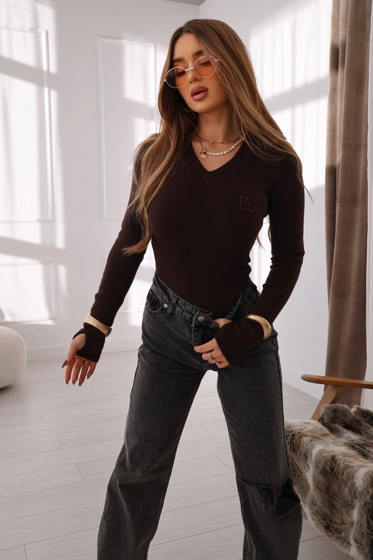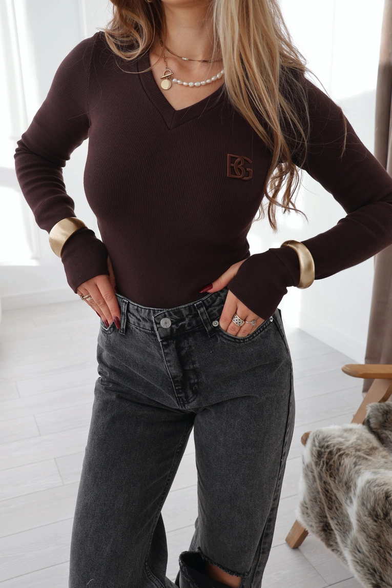 Opis produktu: Body BG LICK z wysokiej jakości elastycznego, bawełnianego ściągacza. Body z długim rękawem, w mankiecie dodatkowo otwór na palec, dekolt w serek. Logowanie marki BG w tonacji materiału na sercu.