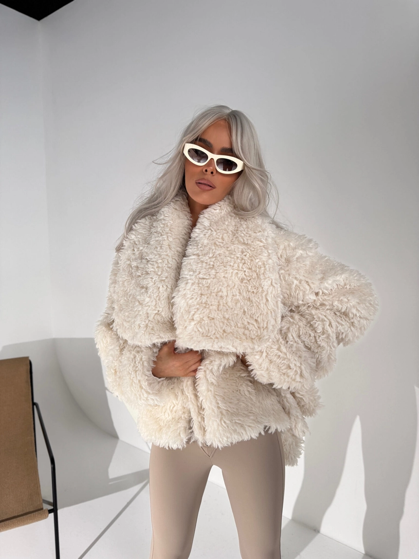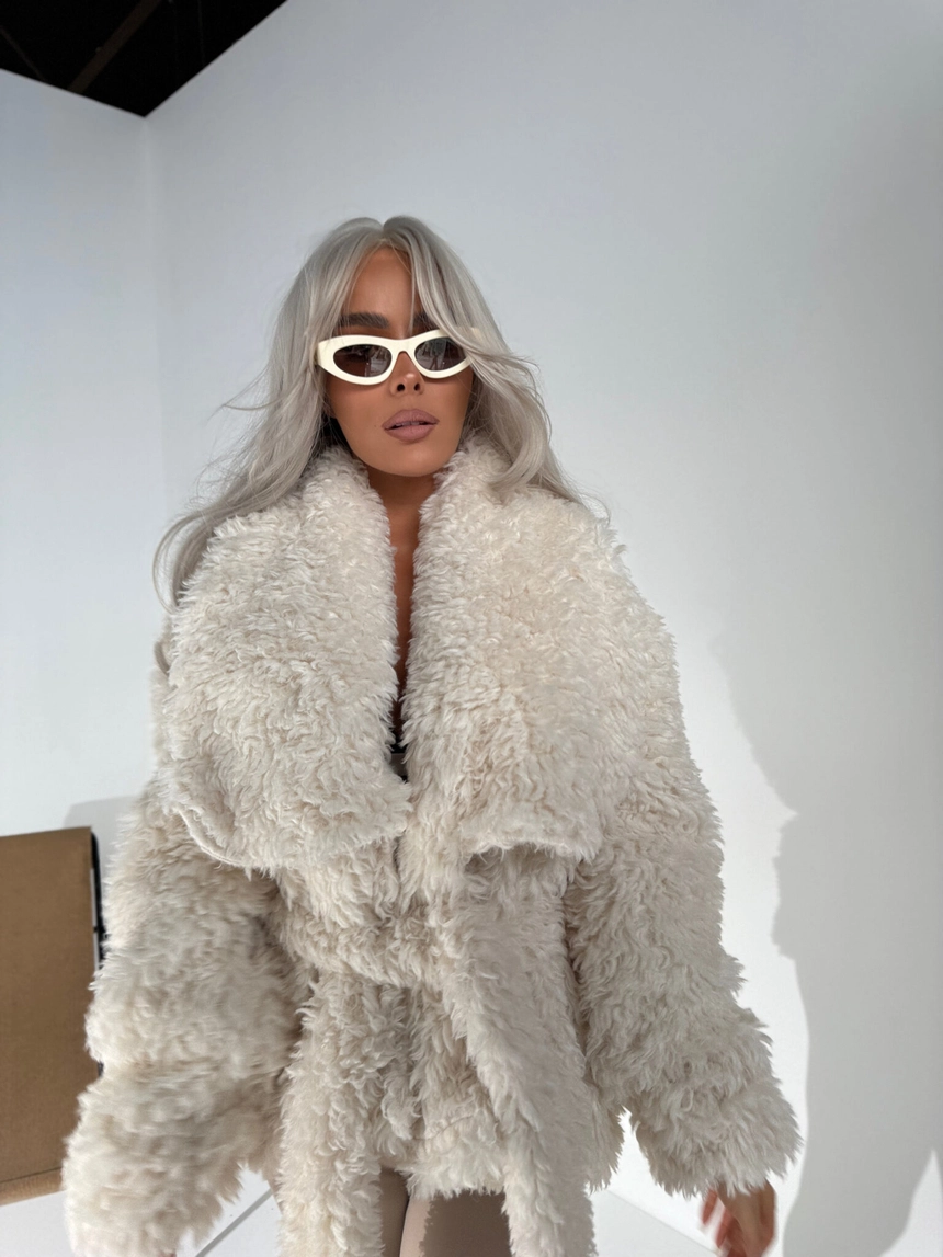 Futro, które mówi samo za siebie. Mięsiste, puszyste, z szerokim kołnierzem i nonszalanckim fasonem – wygląda jak luksus, czuje się jak koc. Pasek w talii pozwala nosić je swobodnie lub bardziej zdefiniowanie, w zależności od nastroju. Na plecach naszywka LAMANUEL, która dyskretnie przypomina, że styl ma znaczenie. To nie jest kolejna zimowa narzutka – to statement piece, który robi całą stylizację.Skład: 100% poliester