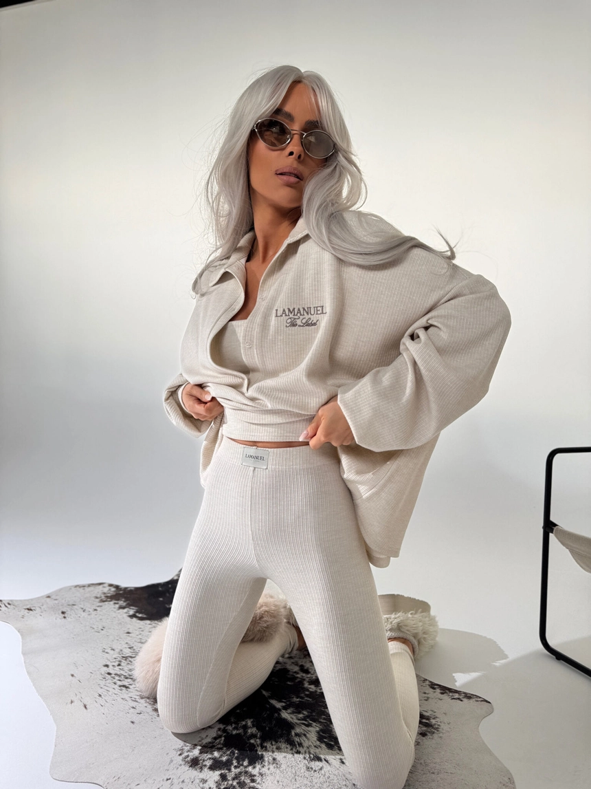 Bluza z prążkowanej dzianiny, która wygląda jak totalny chill, ale ma w sobie coś więcej. Rozpinana przy dekolcie, z obszernym kapturem i luźnym krojem – stworzona do warstw, do luzu, do noszenia “niby od niechcenia”, ale z efektem. Haft z logo na piersi robi tu całą robotę – subtelny, ale przyciąga oko. To ten typ bluzy, którą wrzucasz na siebie i nie musisz już nic kombinować. Styl sam się broni.Skład: 75% nylon 22% wiskoza 3% spandex