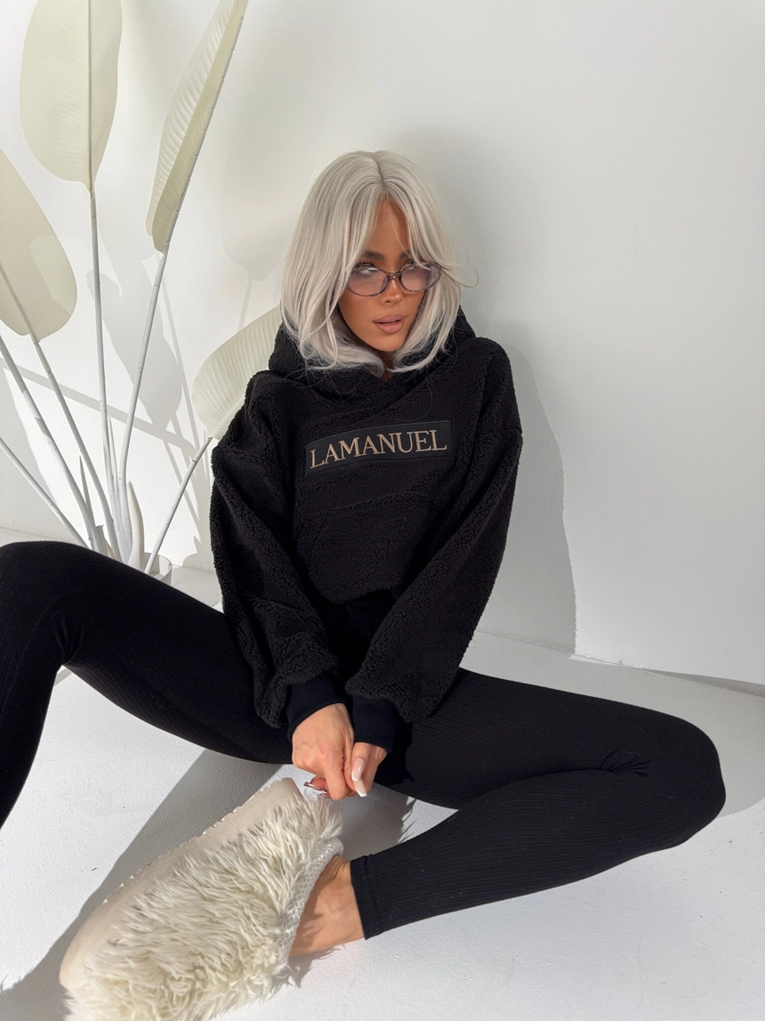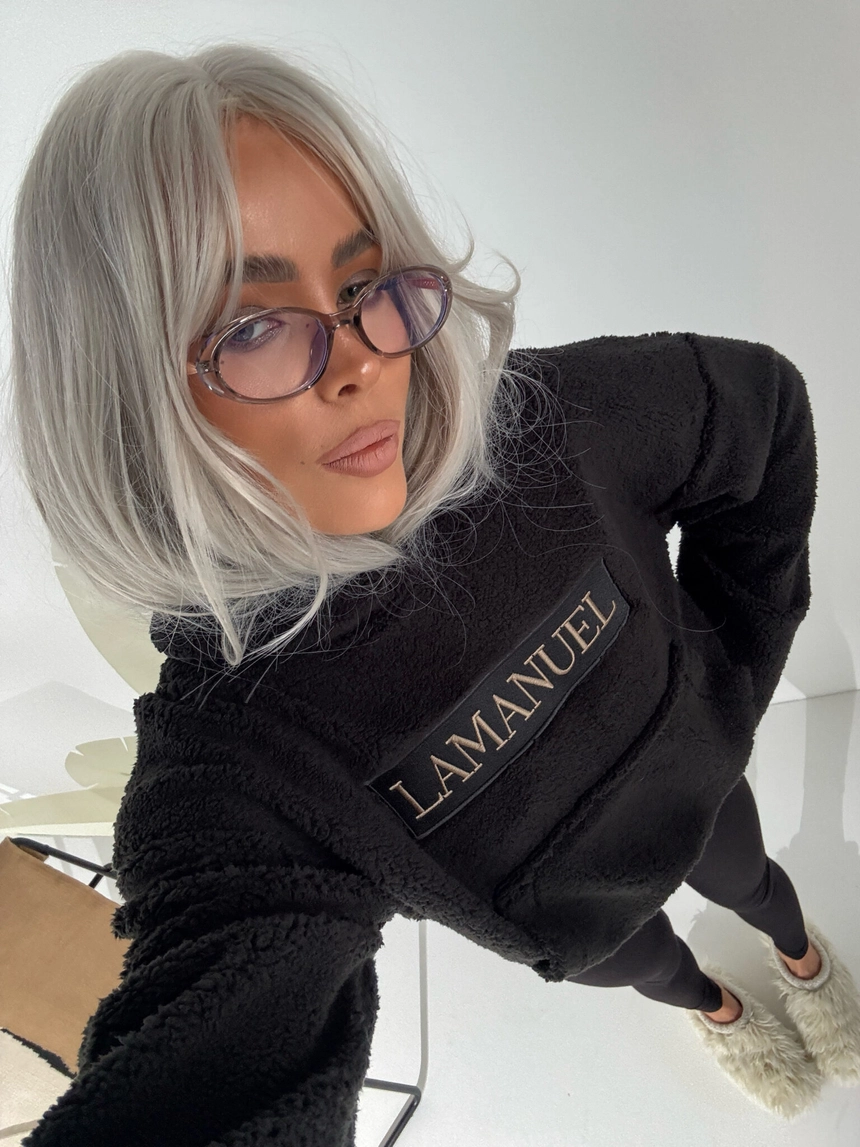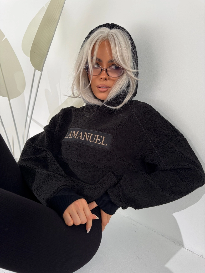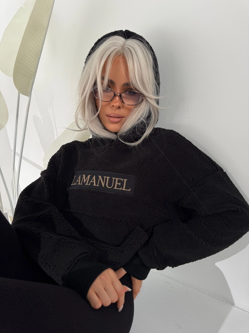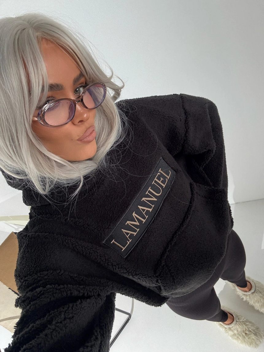 Bluza z miękkiego baranka, która otula jak koc i wygląda tak, że nie chcesz jej zdejmować. Oversize’owy krój daje luz, a naszywka z logo na przodzie dodaje charakteru – nie za głośno, ale konkretnie. Kieszeń typu kangur to klasyk, który tu gra nie tylko praktycznie, ale też stylowo. To bluza, którą wrzucasz na siebie z rana i nagle dzień staje się przyjemniejszy.Skład: 100% poliester