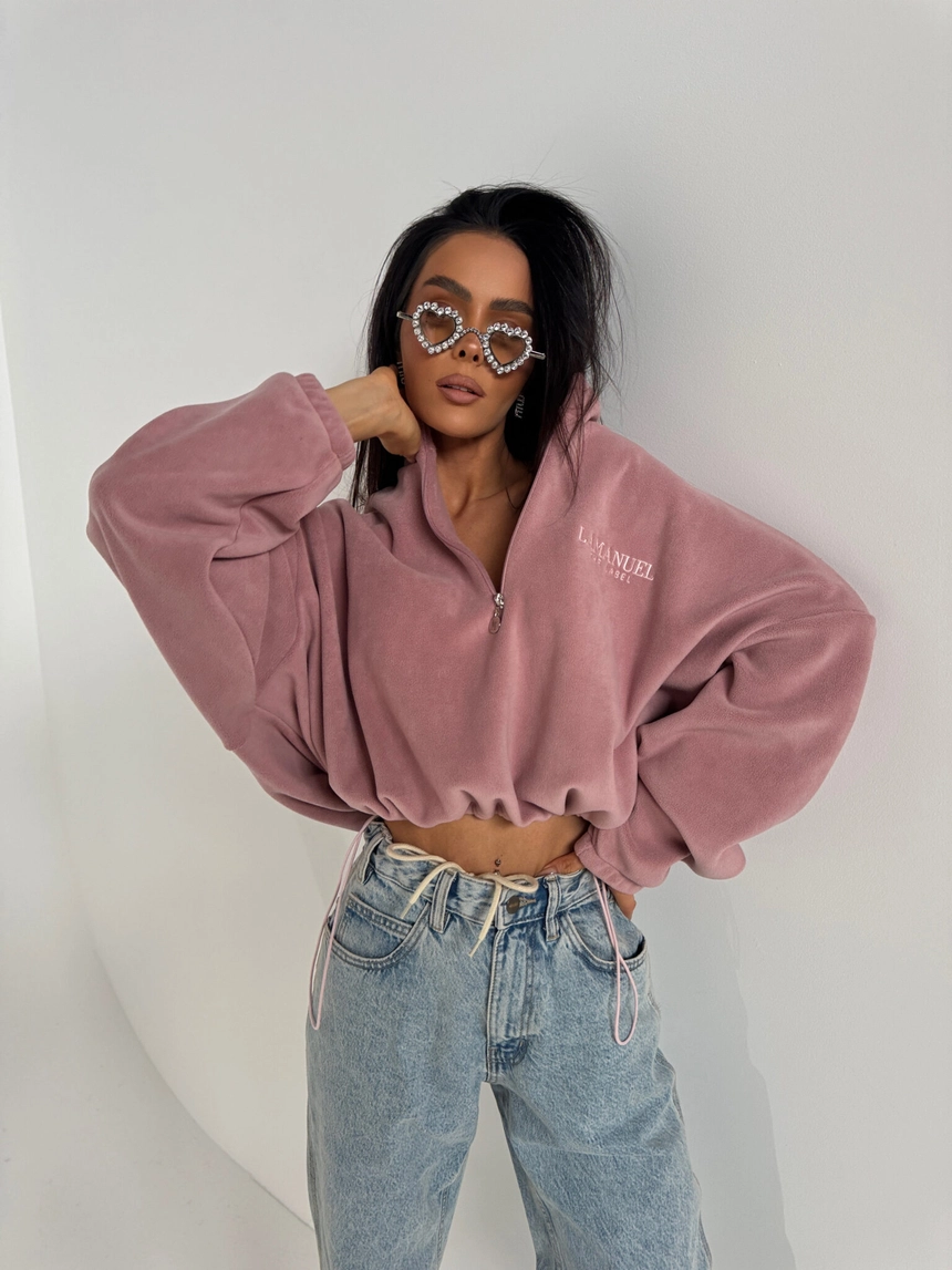 Oversize’owa bluza wykonana z grubszego, ciepłego polaru, który świetnie sprawdzi się w chłodniejsze dni. Materiał jest miękki, przyjemny w dotyku i dobrze trzyma ciepło. Model z krótkim zamkiem i wysokim kołnierzem, który możesz postawić lub odpiąć dla swobodniejszego looku. Z przodu i na plecach tonalny haft z logo LAMANUEL. Dół bluzy regulowany – można ją nosić luźno lub ściągnąć troczkiem. Dzięki uniwersalnemu, luźnemu krojowi pasuje również na sylwetki do XL.Skład: 95% poliester 5% elastan
