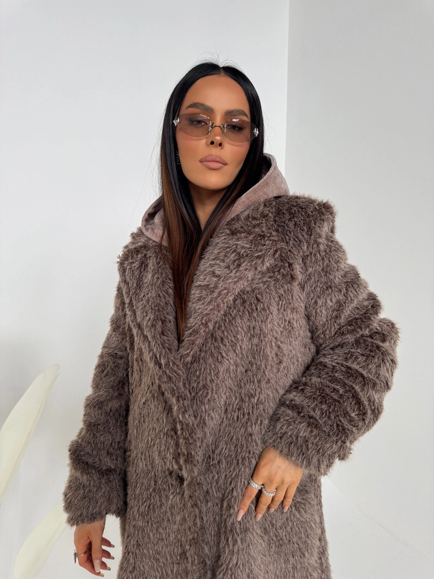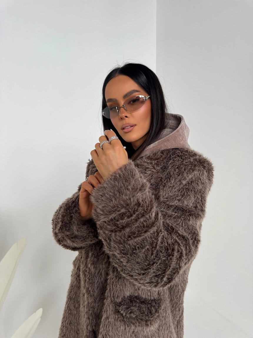 Ciepły, puszysty, spektakularny – ten płaszcz to zimowy statement piece, który łączy wygodę i styl na najwyższym poziomie. Wykonany z wyjątkowo mięsistego i miękkiego materiału typu miś, który od razu otula jak ciepły koc. Długość do kolan, luźny krój i podkreślone ramiona nadają mu modowego charakteru, a detal w postaci naszywki z logo z tyłu dodaje streetowego sznytu. Posiada umarszczone rękawy. To model, który sprawdzi się wszędzie: założysz go na spacer po mieście, wypad na kawę, zimowy city break czy nawet na luźne spotkanie z przyjaciółmi w stylu après-ski. Idealny do botków, kozaków, sneakersów – pasuje zarówno do joggerów, jak i dopasowanej sukienki. Stylowa alternatywa dla klasycznego płaszcza – komfort termiczny i modowy efekt gwarantowane.Skład: 100% poliester