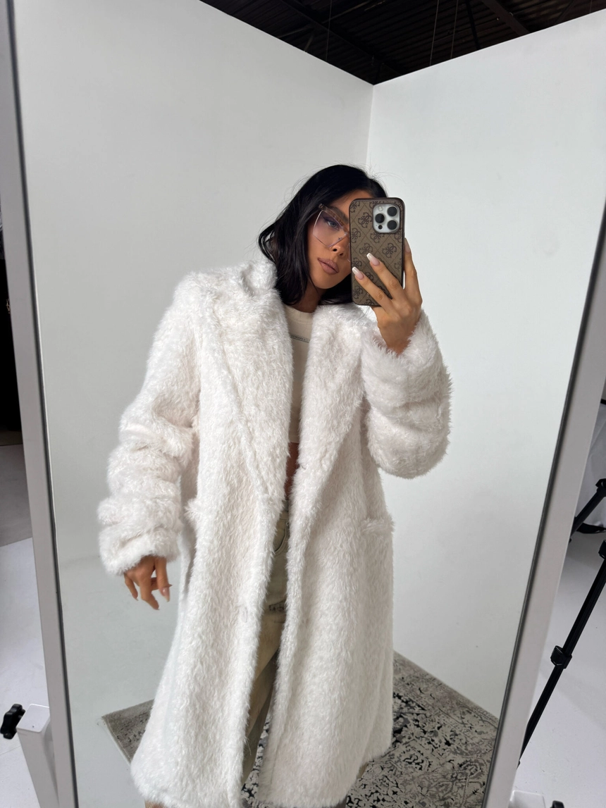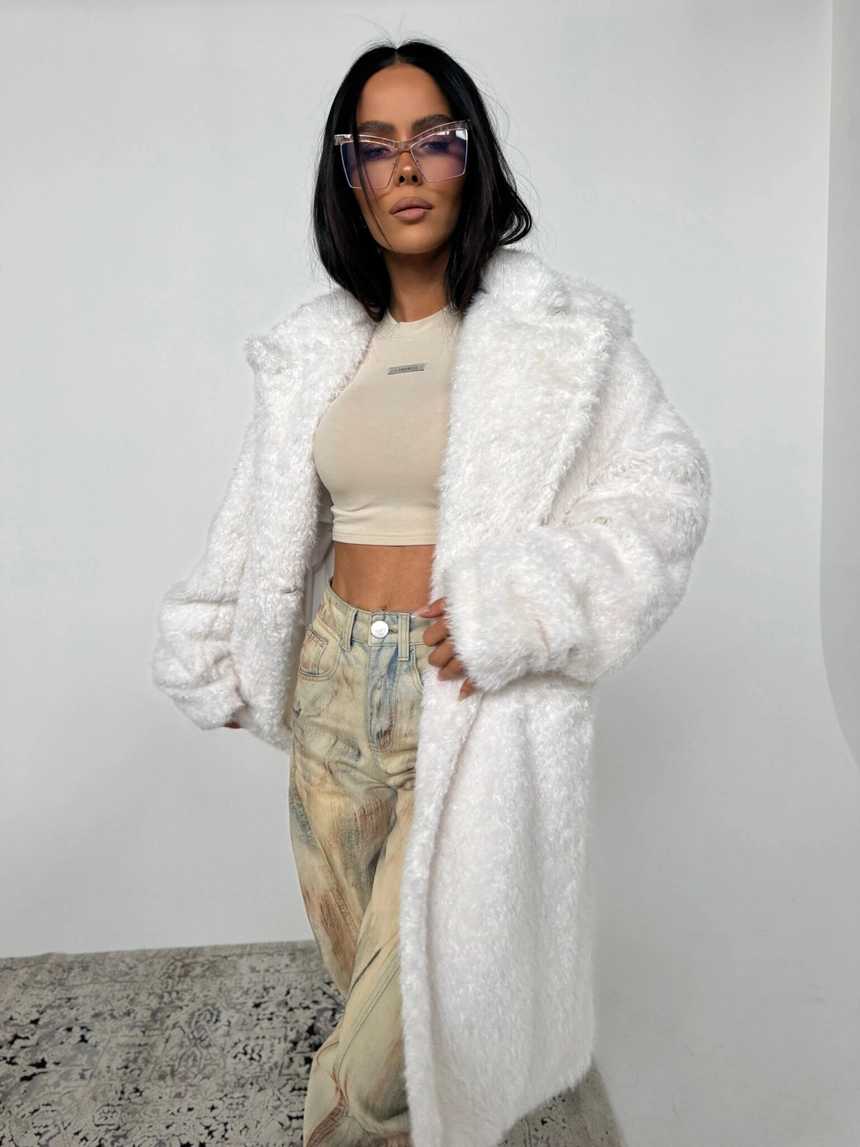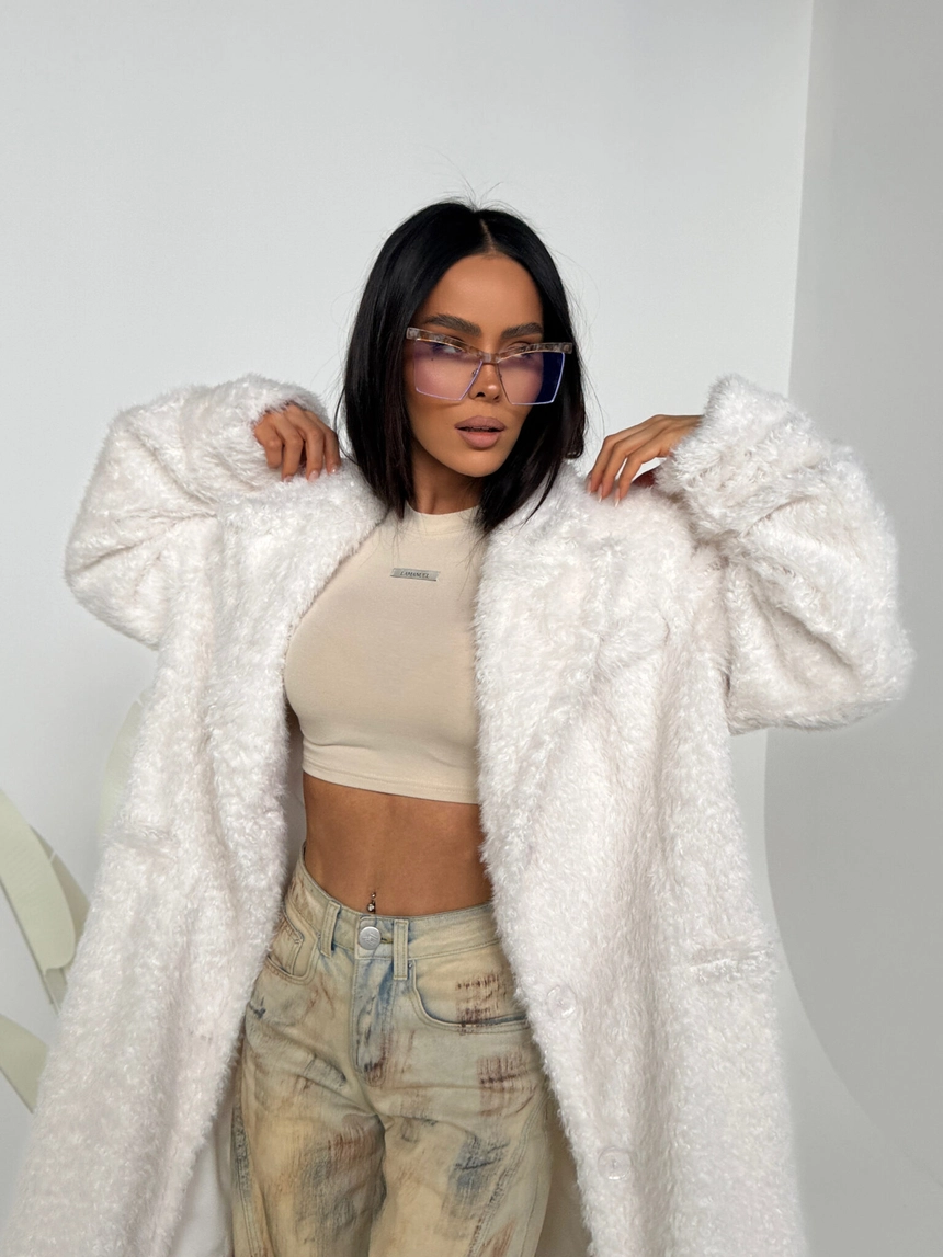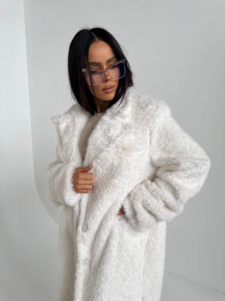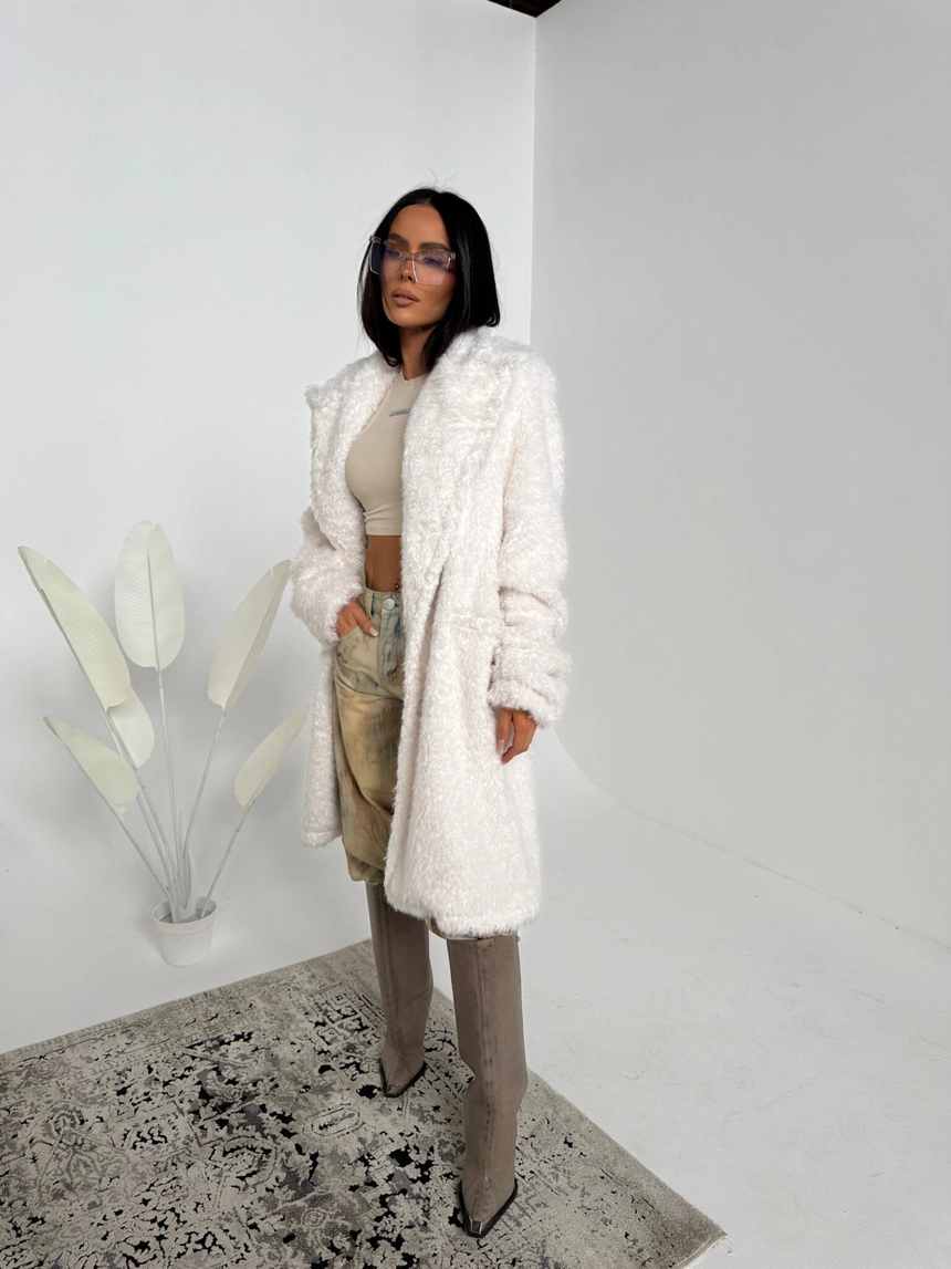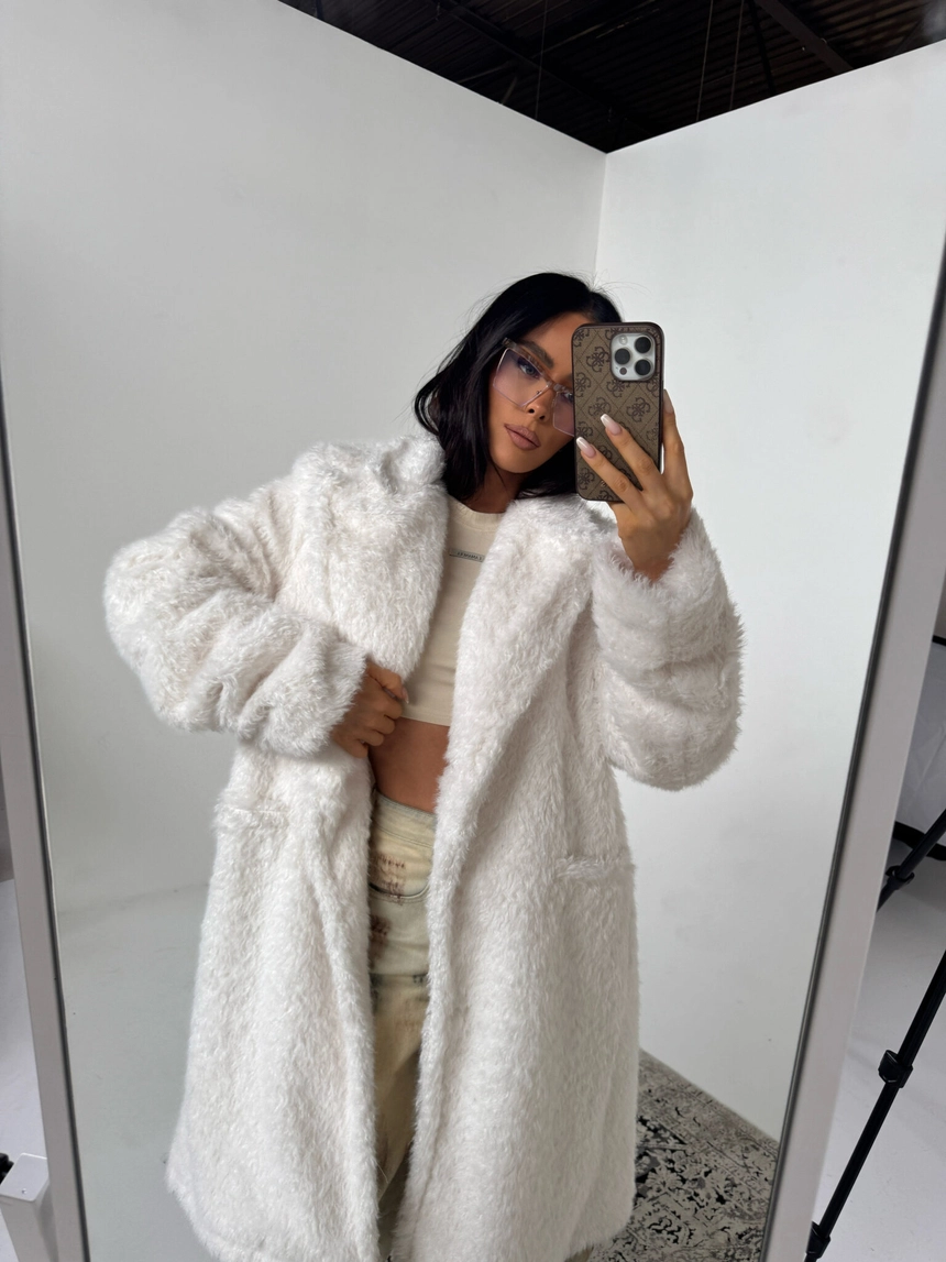 Ciepły, puszysty, spektakularny – ten płaszcz to zimowy statement piece, który łączy wygodę i styl na najwyższym poziomie. Wykonany z wyjątkowo mięsistego i miękkiego materiału typu miś, który od razu otula jak ciepły koc. Długość do kolan, luźny krój i podkreślone ramiona nadają mu modowego charakteru, a detal w postaci naszywki z logo z tyłu dodaje streetowego sznytu. Posiada umarszczone rękawy. To model, który sprawdzi się wszędzie: założysz go na spacer po mieście, wypad na kawę, zimowy city break czy nawet na luźne spotkanie z przyjaciółmi w stylu après-ski. Idealny do botków, kozaków, sneakersów – pasuje zarówno do joggerów, jak i dopasowanej sukienki. Stylowa alternatywa dla klasycznego płaszcza – komfort termiczny i modowy efekt gwarantowane.Skład: 100% poliester