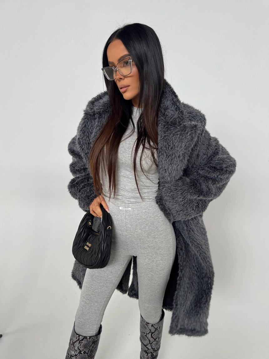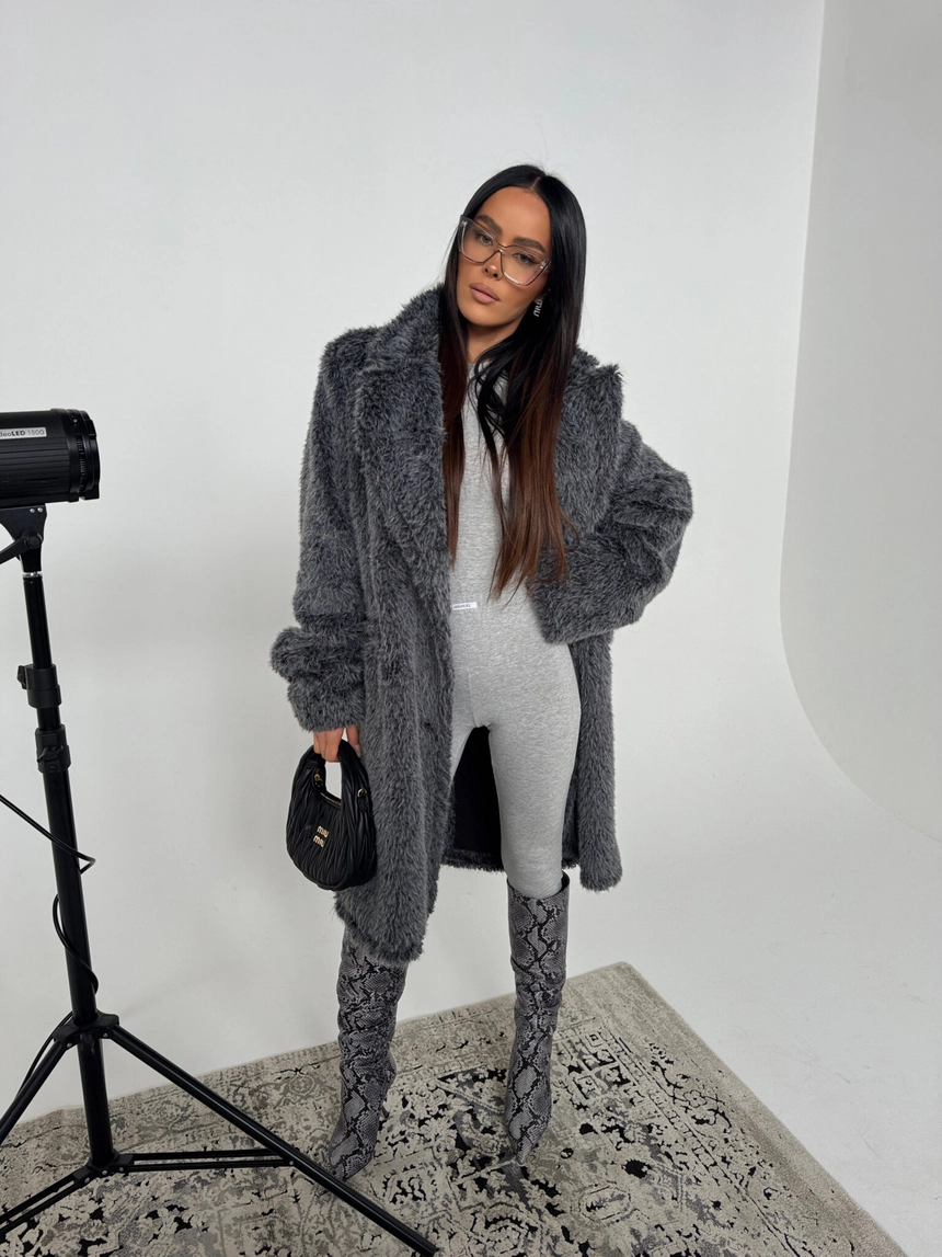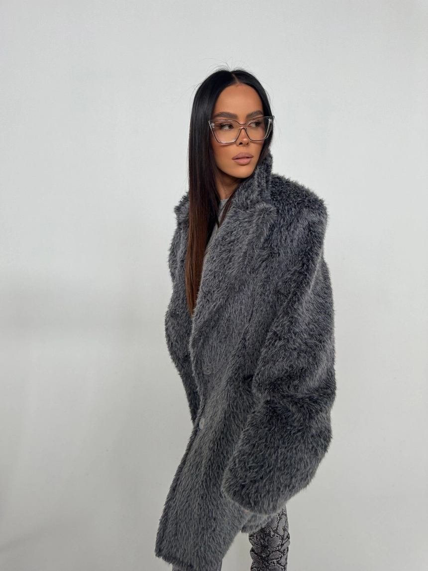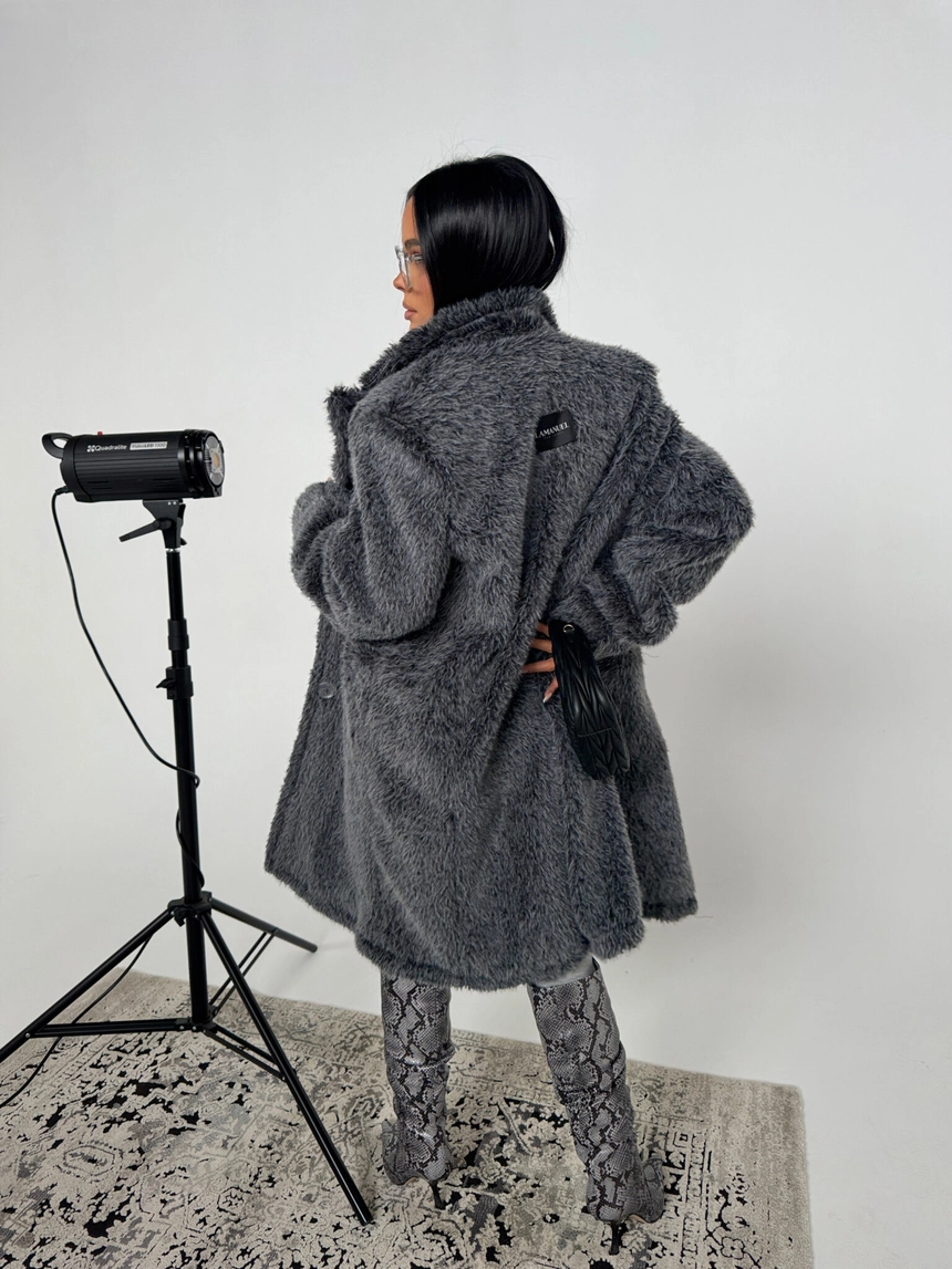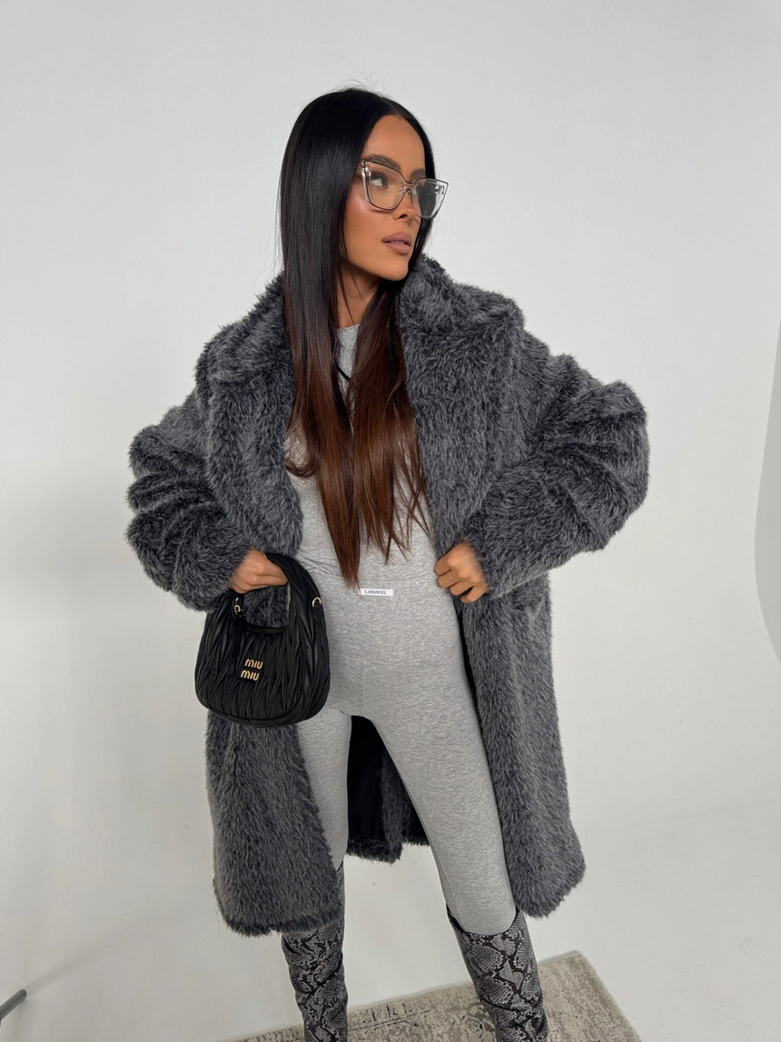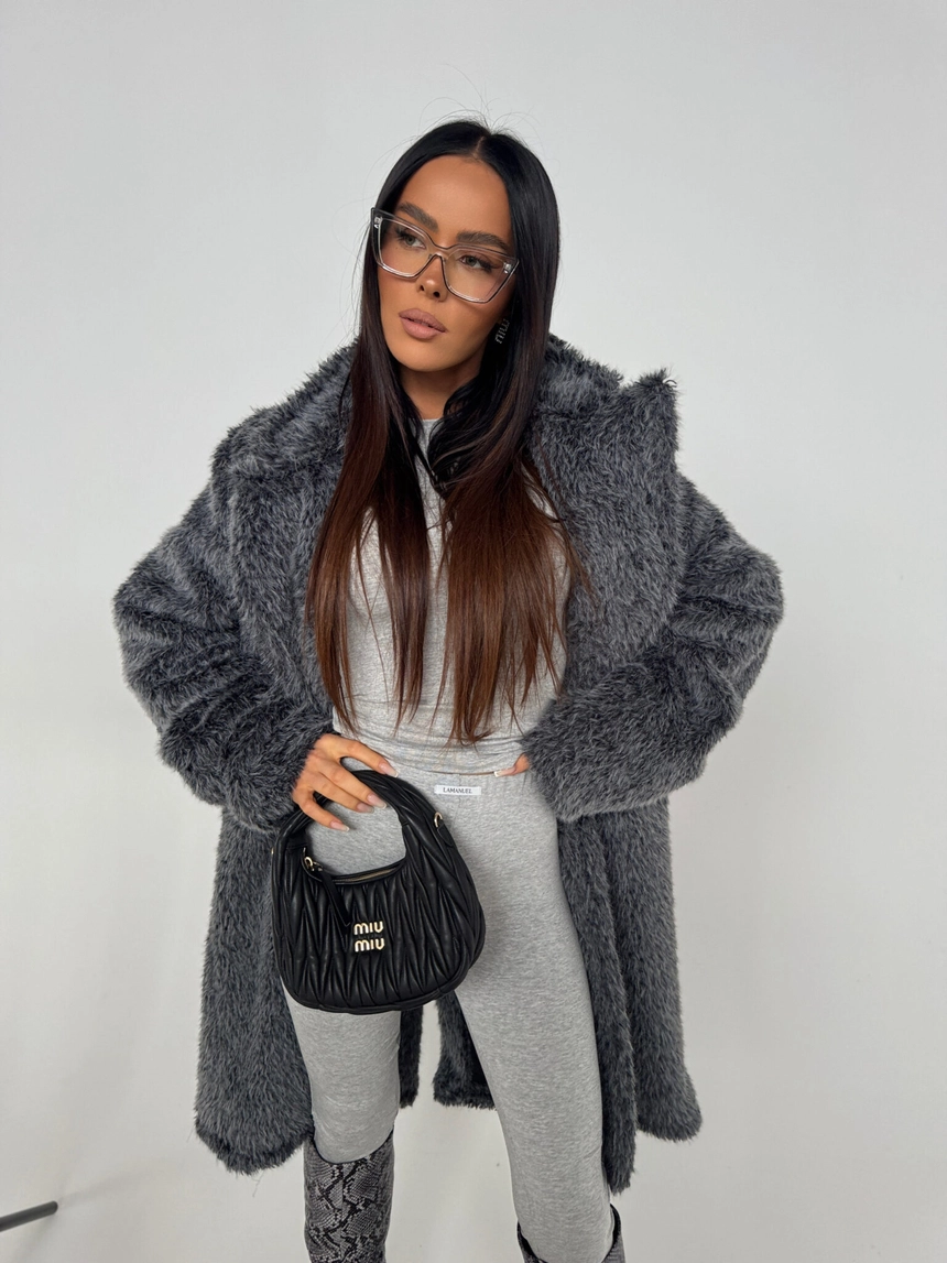 Ciepły, puszysty, spektakularny – ten płaszcz to zimowy statement piece, który łączy wygodę i styl na najwyższym poziomie. Wykonany z wyjątkowo mięsistego i miękkiego materiału typu miś, który od razu otula jak ciepły koc. Długość do kolan, luźny krój i podkreślone ramiona nadają mu modowego charakteru, a detal w postaci naszywki z logo z tyłu dodaje streetowego sznytu. Posiada umarszczone rękawy. To model, który sprawdzi się wszędzie: założysz go na spacer po mieście, wypad na kawę, zimowy city break czy nawet na luźne spotkanie z przyjaciółmi w stylu après-ski. Idealny do botków, kozaków, sneakersów – pasuje zarówno do joggerów, jak i dopasowanej sukienki. Stylowa alternatywa dla klasycznego płaszcza – komfort termiczny i modowy efekt gwarantowane.Skład: 100% poliester