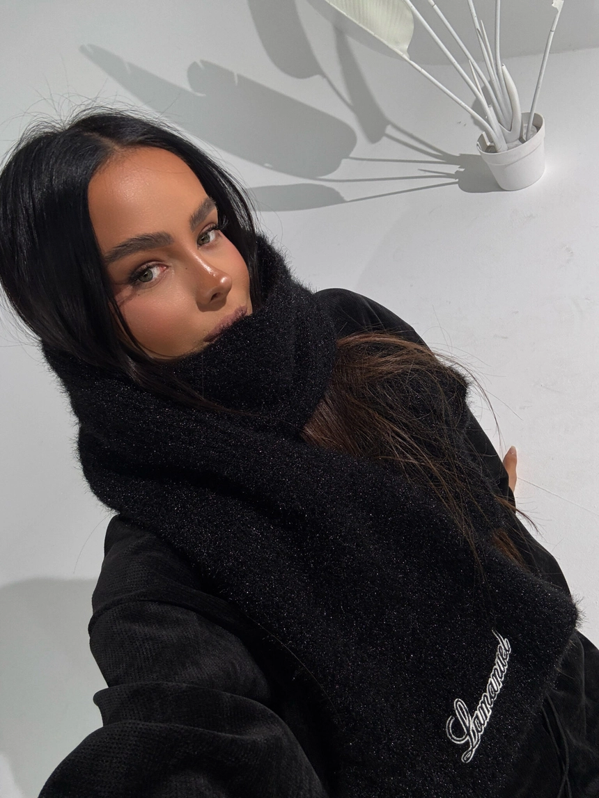Szalik o puszystym wykończeniu i wyrazistym logo haftowanym na jednym końcu. Wykonany z tej samej miękkiej przędzy co czapka – tworzy z nią idealny duet, ale świetnie wygląda również solo. Lekki, ale ciepły – dobrze się układa i dodaje objętości stylizacji. Stanowi idealny dodatek do jesienno-zimowych looków, łącząc funkcjonalność z modowym charakterem. Doskonały wybór do oversize’owych płaszczy i kurtek.Skład: 38% akryl 25% moher 20% wełna 17% poliamid