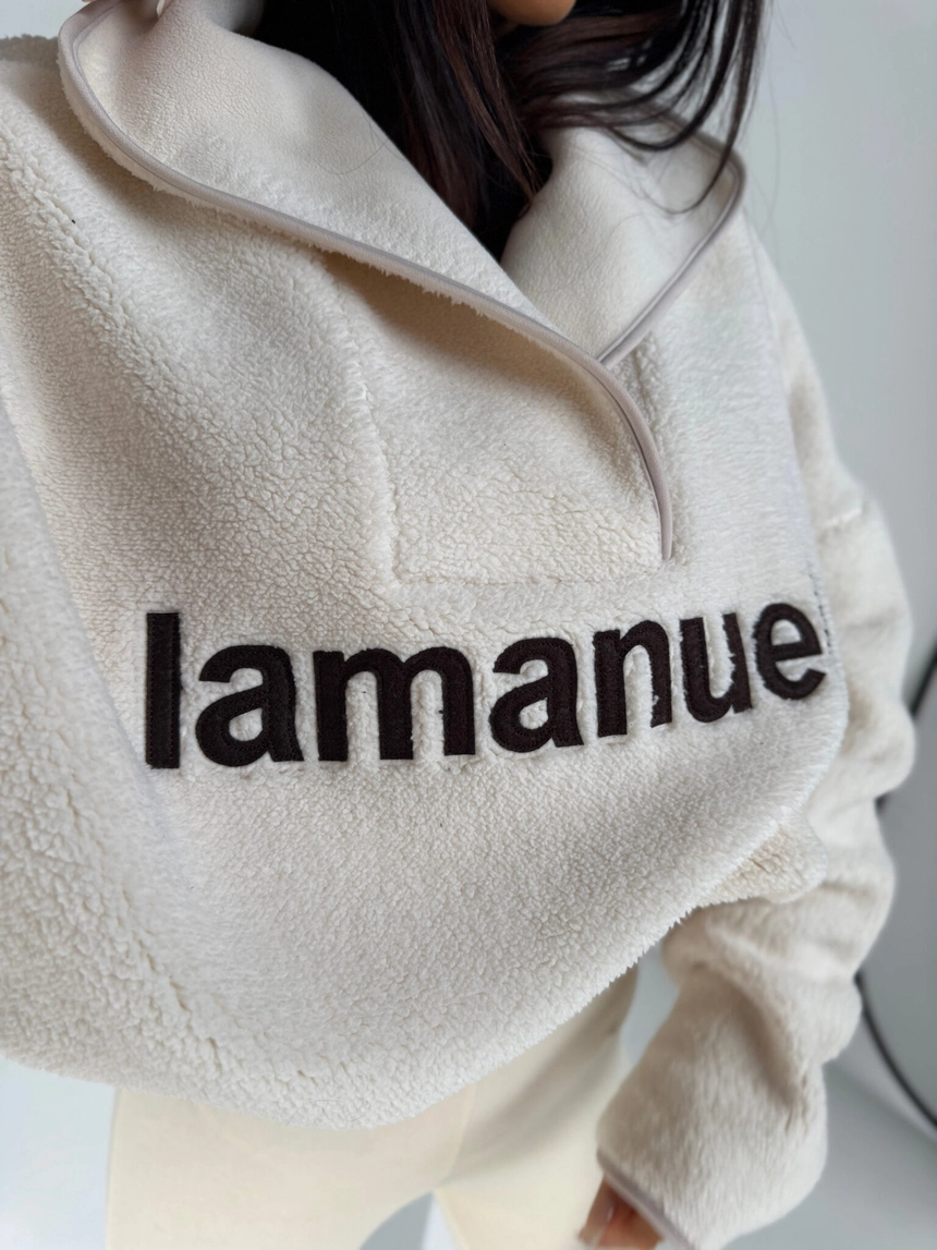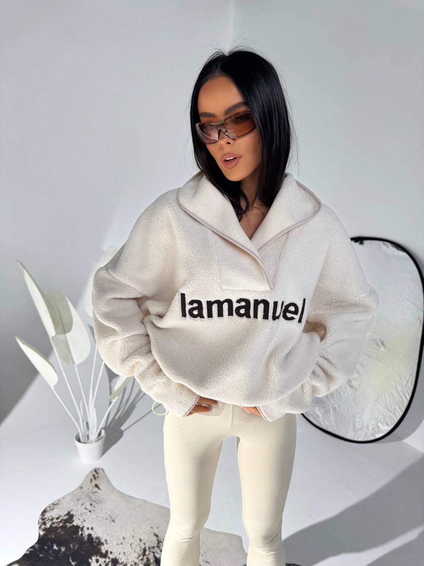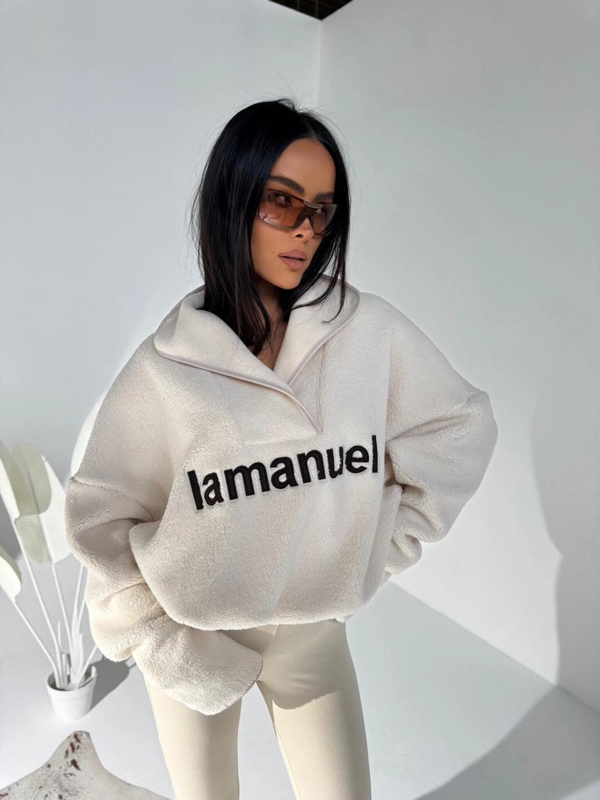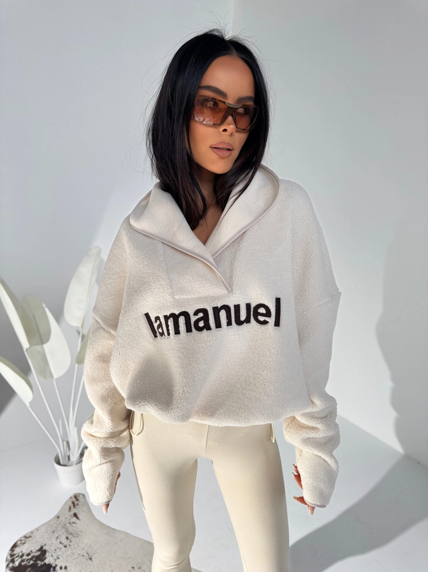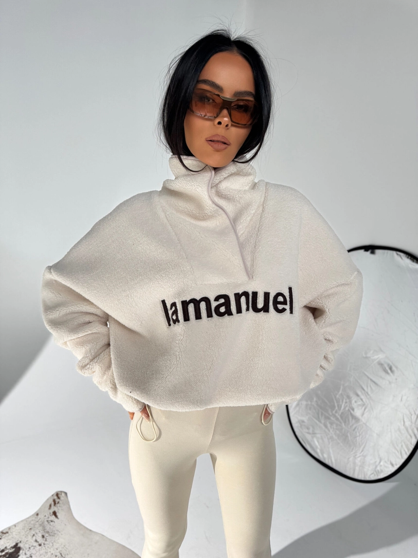 Aktualna partia dostępna od ręki. Kolejna dostawa spodziewana ok. 15 grudnia — ograniczona ilość. Jeśli jesteś zdecydowana/y, zamów teraz, zanim zniknie.Miękka jak chmurka, ciepła jak koc i stylowa jak streetwear prosto z zimowego kurortu. Oversize’owa bluza z polarowego materiału, który nie tylko grzeje, ale też robi efekt wow dzięki wyrazistemu haftowi z logo La Manuel z przodu. Wysoka stójka z asymetrycznym zamkiem podkręca całość i nadaje modowego twistu w stylu après-ski. To bluza, którą założysz po całym dniu na stoku, na spacer po mroźnym mieście albo po prostu wtedy, gdy chcesz wyglądać świetnie i czuć się jeszcze lepiej. Świetnie gra z legginsami, puchówką, moonbootami albo klasycznymi dresami. Komfort, ciepło i styl w jednym — must-have sezonu zimowego.Skład: 95% poliester 5% elastan