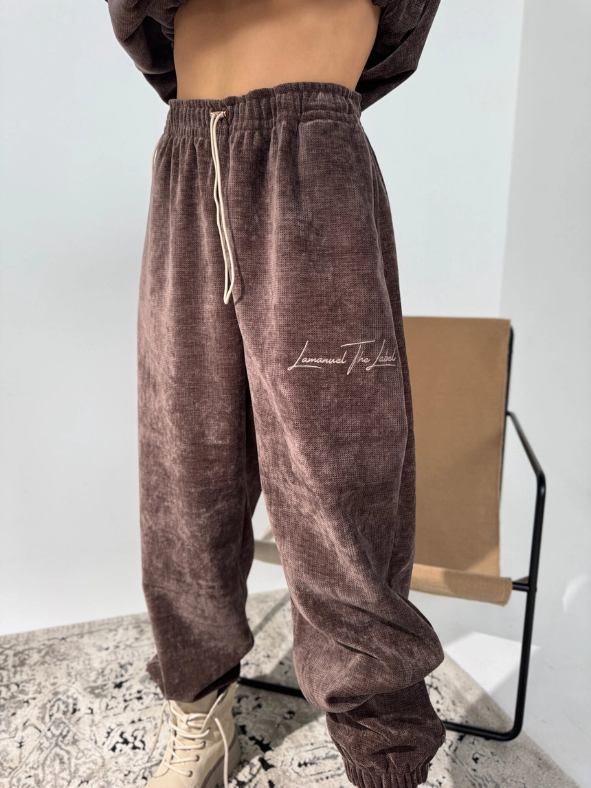 Czujesz się w nich, jakbyś właśnie wróciła z górskiej chaty. Welurowy materiał otula ciało, gumka w pasie i luźna nogawka dają pełen luz, a ściągacze trzymają formę. To spodnie na zimowy reset – do bluzy, do herbaty, do grubych skarpetek. Ale niech Cię nie zmyli ten chill – wyglądają naprawdę dobrze.Skład: 95% poliester 5% spandex