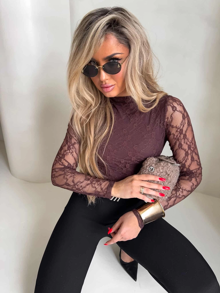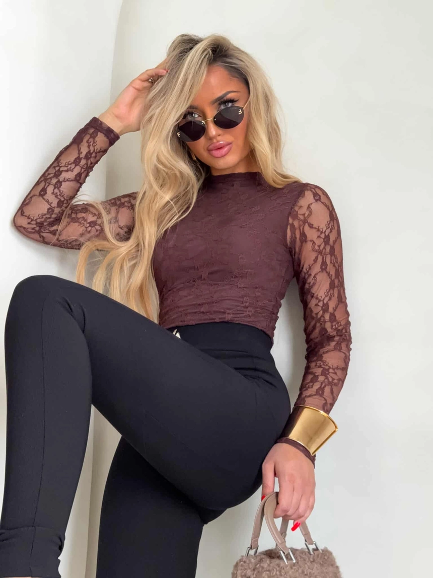 Bluzka SKIN IV transparent koronka - czekoladowa