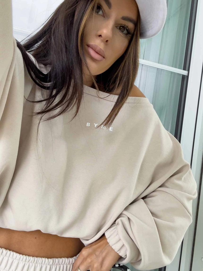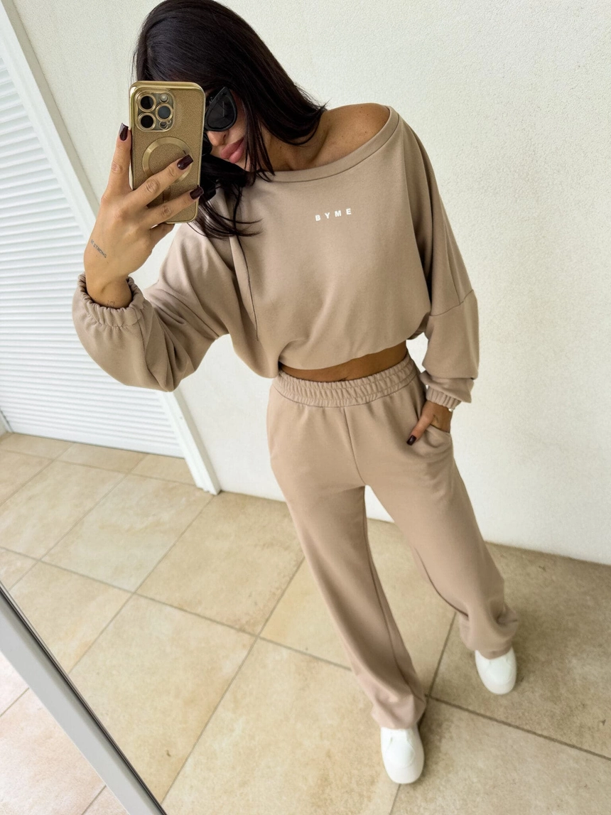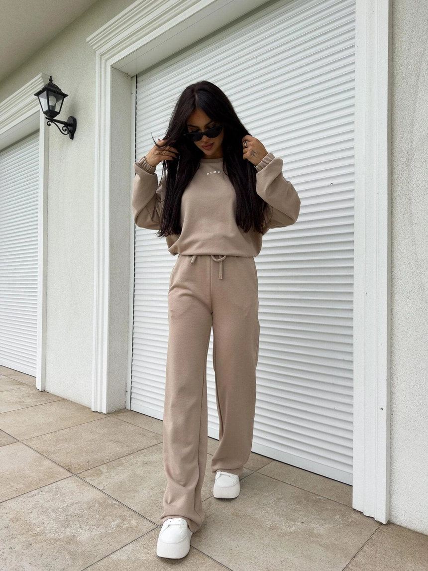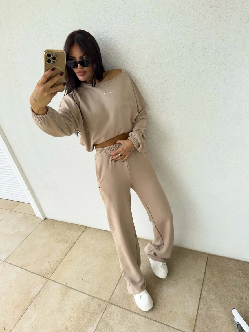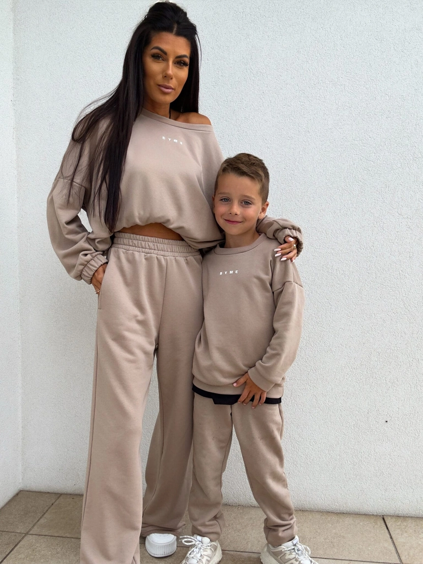 Komplet Sydney składający się z bluzy i spodni. Bluza o prostym, luźnym kroju, z długim rękawem zakończonym gumą. Szerokie spodnie z gumką w pasie