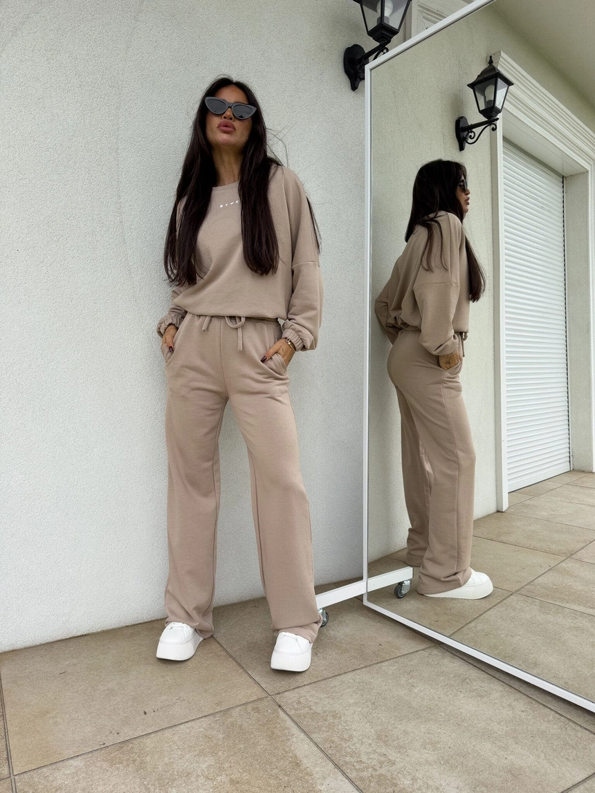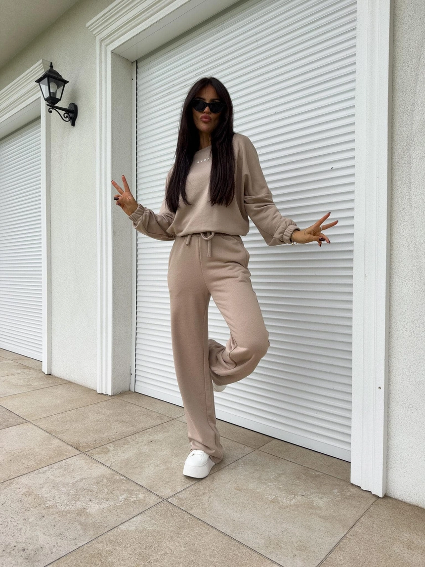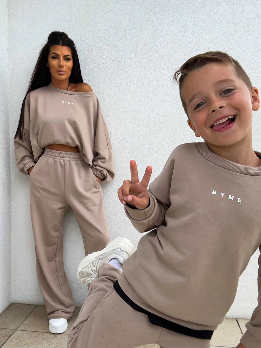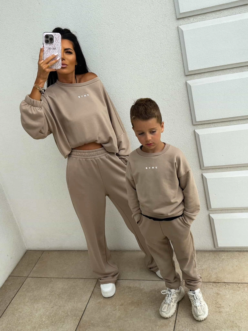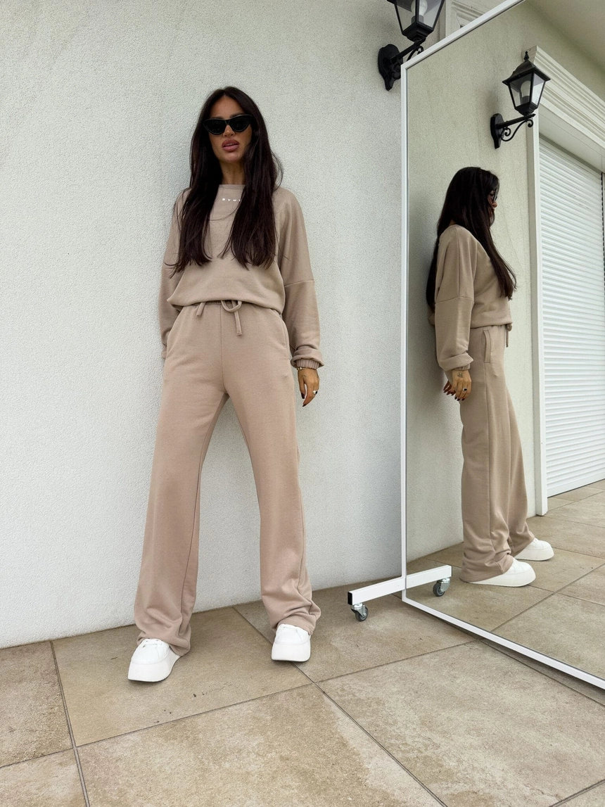 Komplet Sydney składający się z bluzy i spodni. Bluza o prostym, luźnym kroju, z długim rękawem zakończonym gumą. Szerokie spodnie z gumką w pasie