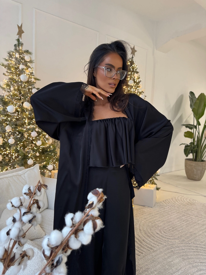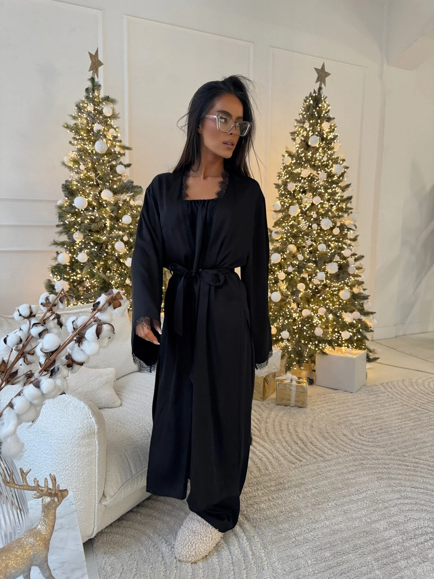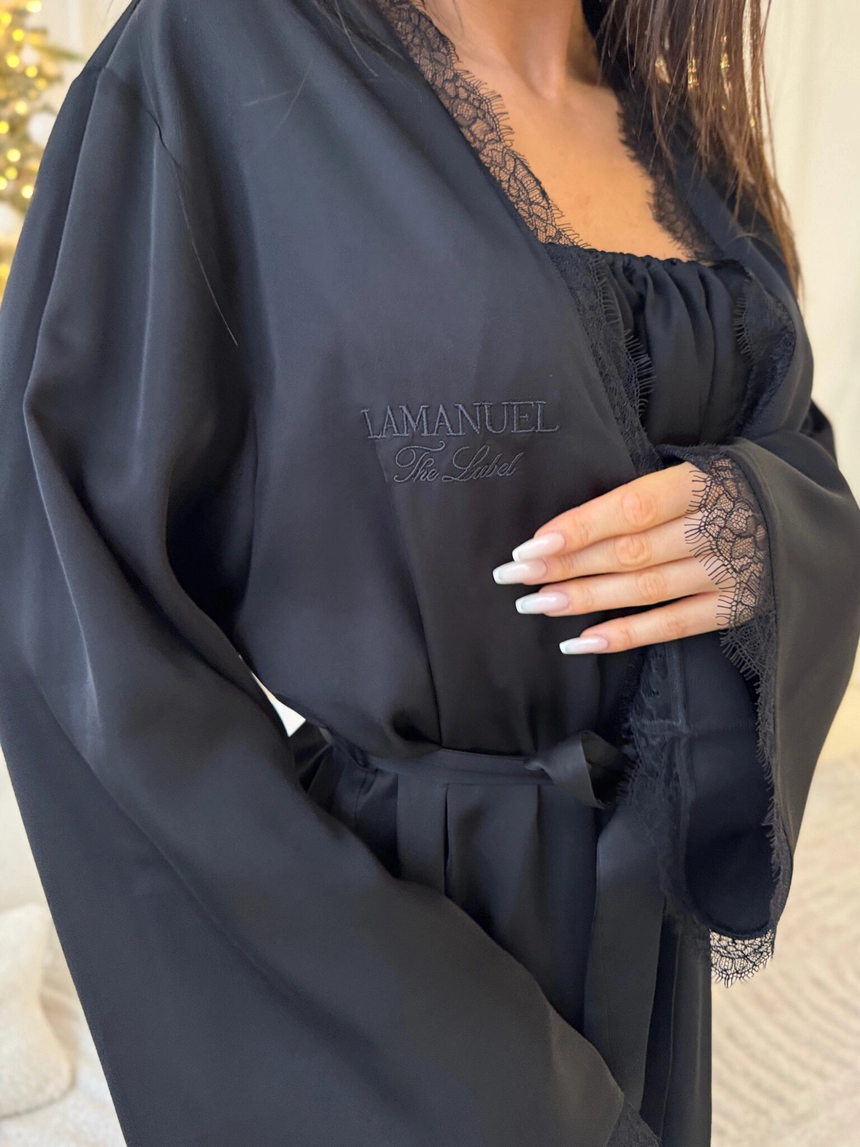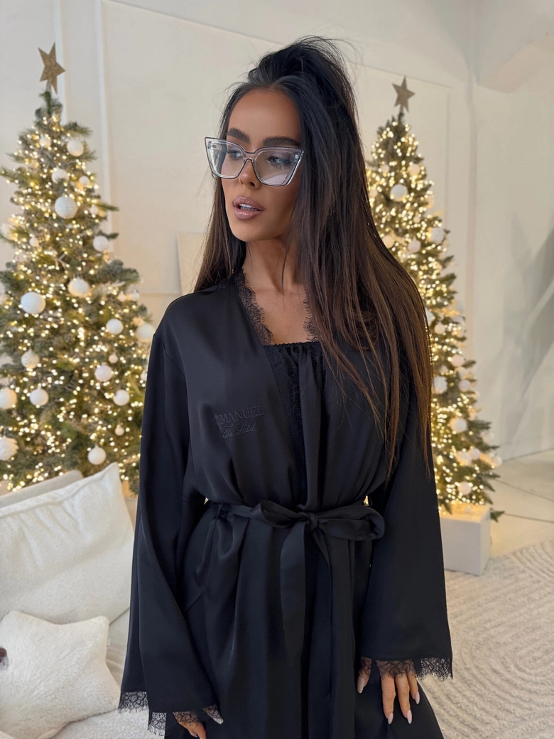 Szlafrok, który wygląda jak luksus – i dokładnie taki jest. Wykonany z wysokogatunkowej, naturalnej wiskozy o satynowym wykończeniu, gwarantuje nie tylko wyjątkową miękkość, ale też przewiewność i komfort noszenia. Tkanina pięknie się układa, subtelnie błyszczy i jest przyjemna dla skóry – nawet tej najbardziej wymagającej. Delikatna koronka i haftowane logo LAMANUEL podkreślają jego wyrafinowany charakter. To produkt klasy premium, który robi wrażenie – od materiału po każdy detal. Idealny dla kobiety, która wybiera jakość i chce czuć się wyjątkowo – codziennie.Skład: 100% wiskoza satyna