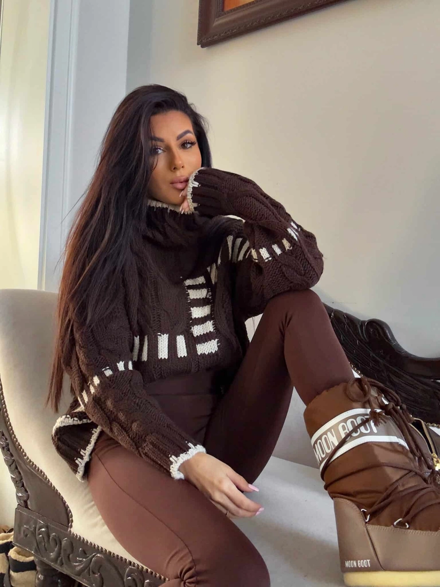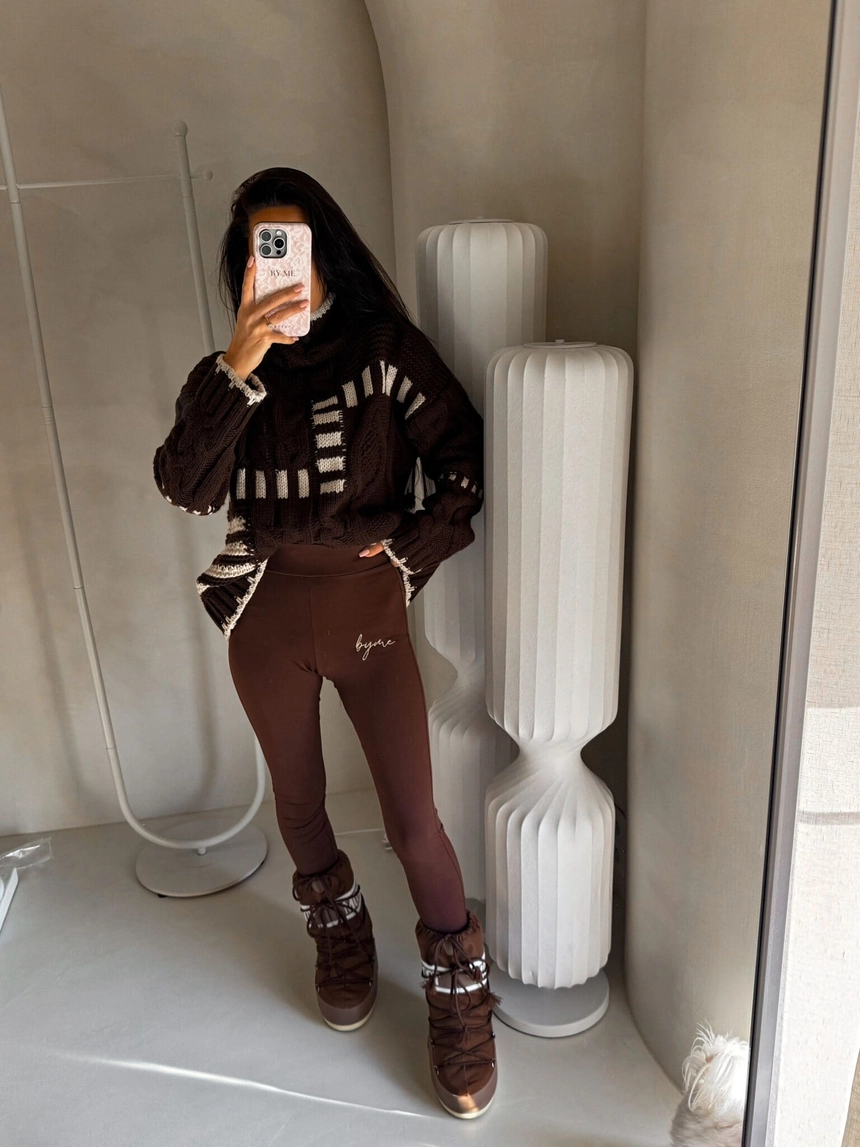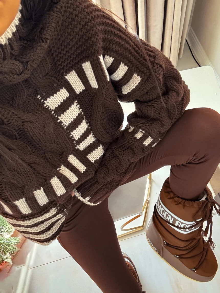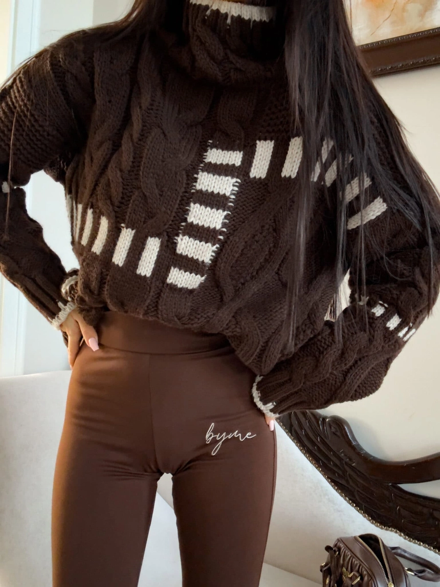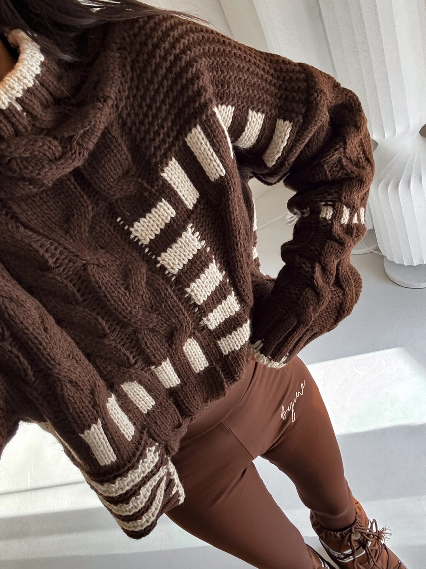 Sweter golf TRAIN – czekoladowo-beżowy