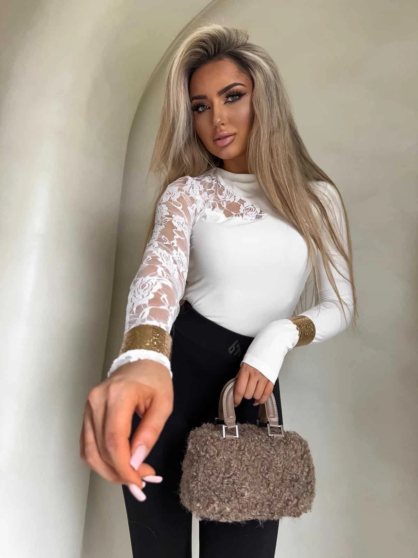Dopasowana bluzka z długim rękawem wykonana z elastycznego, przyjemnego w dotyku materiału, który idealnie przylega do ciała, podkreślając atuty sylwetki.