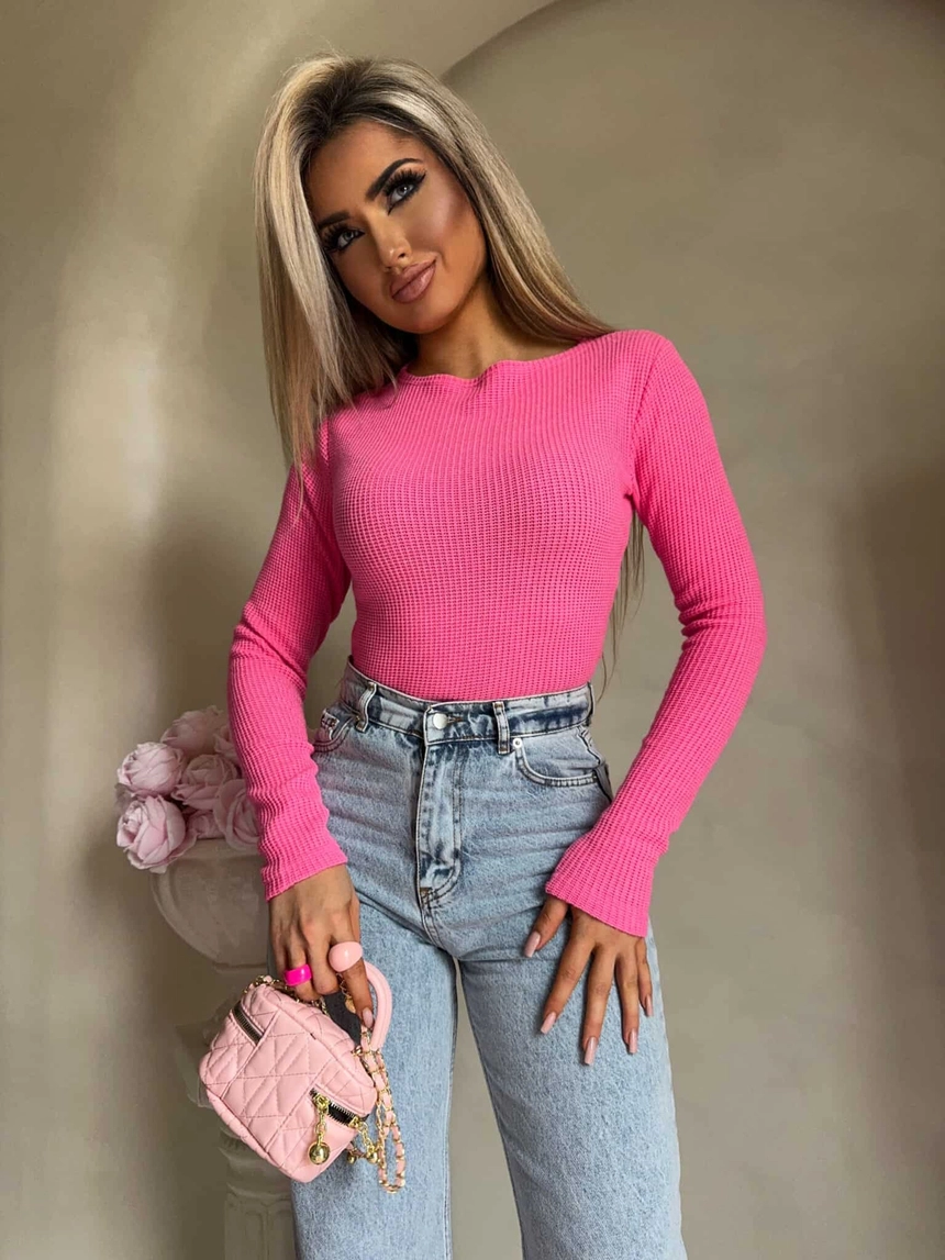 Stylowa i kobieca bluzka wykonana z elastycznego, prążkowanego materiału, który doskonale dopasowuje się do sylwetki, podkreślając jej kształt. Model z długimi rękawami oraz dekoltem w łódkę, który subtelnie eksponuje szyję i obojczyki. Miękka i rozciągliwa tkanina zapewnia komfort noszenia oraz swobodę ruchów.