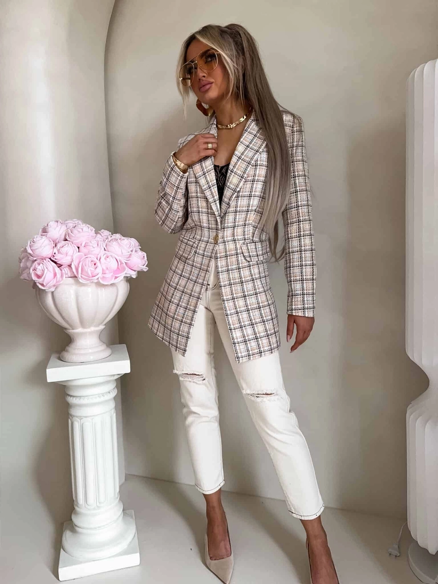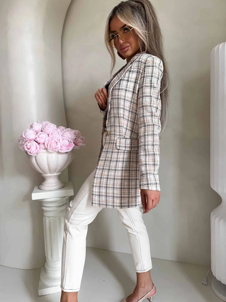 Marynarka LONG krata – beżowa