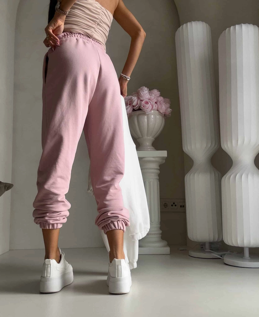 Spodnie dresowe – dopasowane, z elastycznym pasem w talii i ściągaczami na dole nogawek. Ich krój podkreśla sylwetkę, zachowując jednocześnie pełną swobodę ruchów.